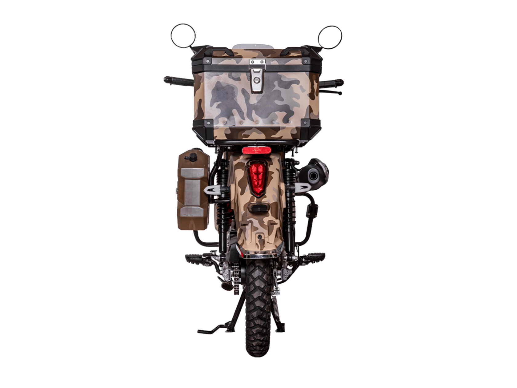 ATAKI Yemi Hunter – стильный мопед для настоящих охотников и рыбаков. Юркая модель с камуфляжным принтом и объёмными кофрами, готовая отправиться на лесные тропы.Силовая установка представлена одноцилиндровым 4-тактным двигателем с воздушным охлаждением. При объёме 120 см³ двигатель способен обеспечить мощность в 8,8 л.с. Бесперебойную работу в любых условиях обеспечивает карбюраторная система подачи топлива. Запуск двигателя осуществляется с помощью электростартера или кикстартера. Полуавтоматическая коробка передач имеет 4 ступени.Максимальная скорость 80 км/ч.Объём топливного бака 4,5 литра.На мопед установлены колёса диаметром 17 дюймов. Передняя подвеска – классическая телескопическая вилка, подвеска сзади – 2 гидравлических амортизатора. На оба колеса установлены гидравлические дисковые тормоза.Вес 102 кг. Колёсная база 1245 мм. Высота по седлу 765 мм.