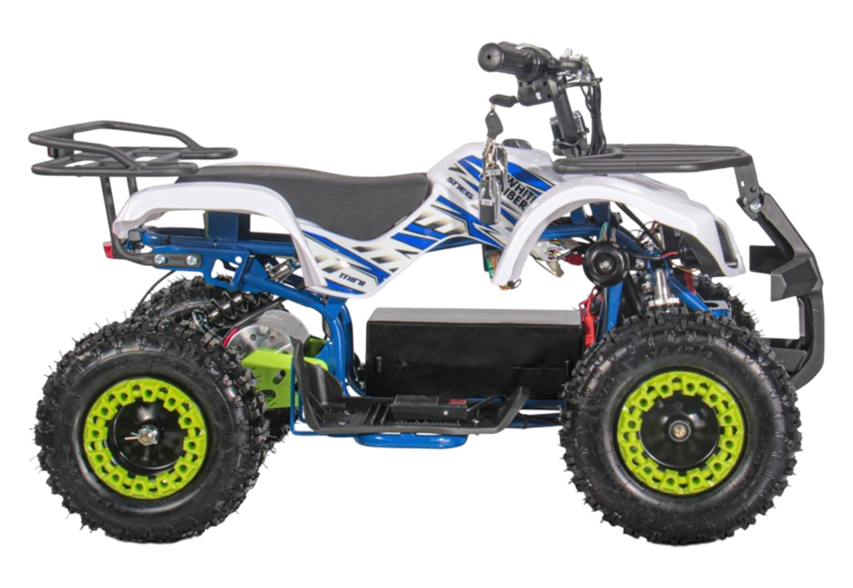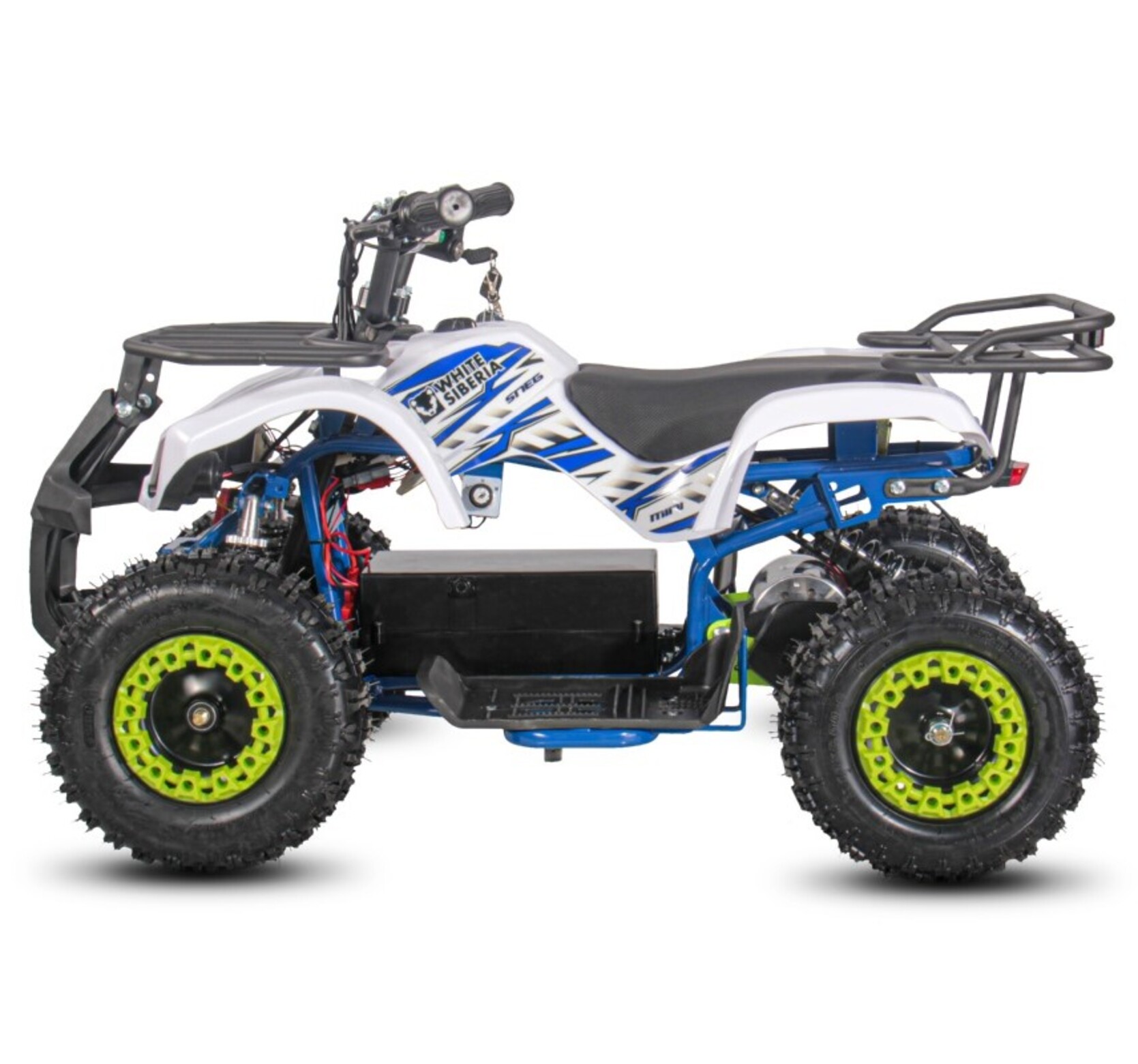 Детский электрический квадроцикл SNEG MINI BLUE 1000WЭлектроквадроцикл SNEG MINI 1000WДанная модель из нашего каталога рассчитана на детей от 3 до 8 лет. Он комфортен, удобен и прост в управлении, благодаря обилию регулировок. Создан для обучения детей управлению мото-техникой в Российских условиях.Что же отличает SNEG MINI 1000W от конкурентов?• Масляные амортизаторы, которые можно настроить в соответствии со своим стилем езды;