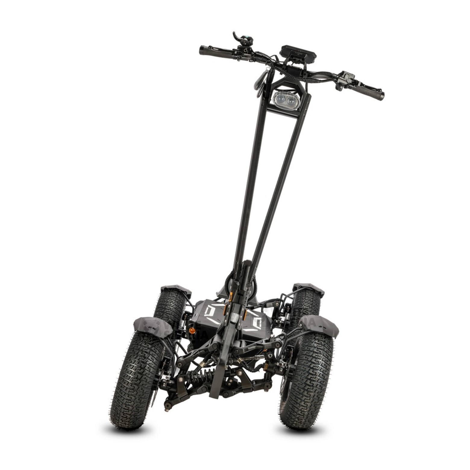 Четырехколесный электросамокат WHITE SIBERIA BANDIT 4X4 7200wЧетырехколесный полноприводный электросамокат WHITE SIBERIA BANDIT 4X4 7200w — это новинка 2024 года.Мощный полноприводный электросамокат WHITE SIBERIA BANDIT 4X4 7200w вобрал в себя все лучшее: высокую скорость, отличную проходимость, большой запас хода, возможность установки сиденья и грузовой корзины, складной механизм и уникальный выделяющийся дизайн.Этот четырёхколёсный электросамокат – отличное транспортное средство как для города, так и для бездорожья.Ходовые качества четырехколесного электросамоката WHITE SIBERIA BANDIT 4X4 7200wБольшинство четырехколесных электросамокатов рассчитаны на неторопливые поездки по магазинам, WHITE SIBERIA BANDIT – исключение. Четыре мотор колеса мощностью 1800w каждое, обеспечат маневренность и проходимость в купе с возможностью разгона до 65 км/ч. Аккумулятор на 60v60a позволяет пройти на этом четырехколесном электросамокате до 100 км, что является внушительными характеристиками для данного вида электротранспорта.