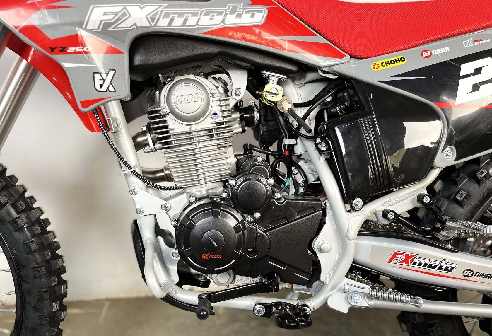 FX MOTO YZ-250 — это мощный и надежный кроссовый мотоцикл, созданный для профессионального и любительского мотокросса. Оснащен высокопроизводительным 2-тактным двигателем объемом 250 куб. см, обеспечивающим отличную динамику, мгновенный отклик на газ и высокий крутящий момент.Легкая и прочная рама гарантирует маневренность и устойчивость даже на самых сложных трассах, а усовершенствованная подвеска эффективно гасит удары и вибрации. Благодаря агрессивному дизайну, удобной эргономике и передовым технологиям, FX MOTO YZ-250 — идеальный выбор для гонщиков, стремящихся к максимальной скорости и контролю на бездорожье.