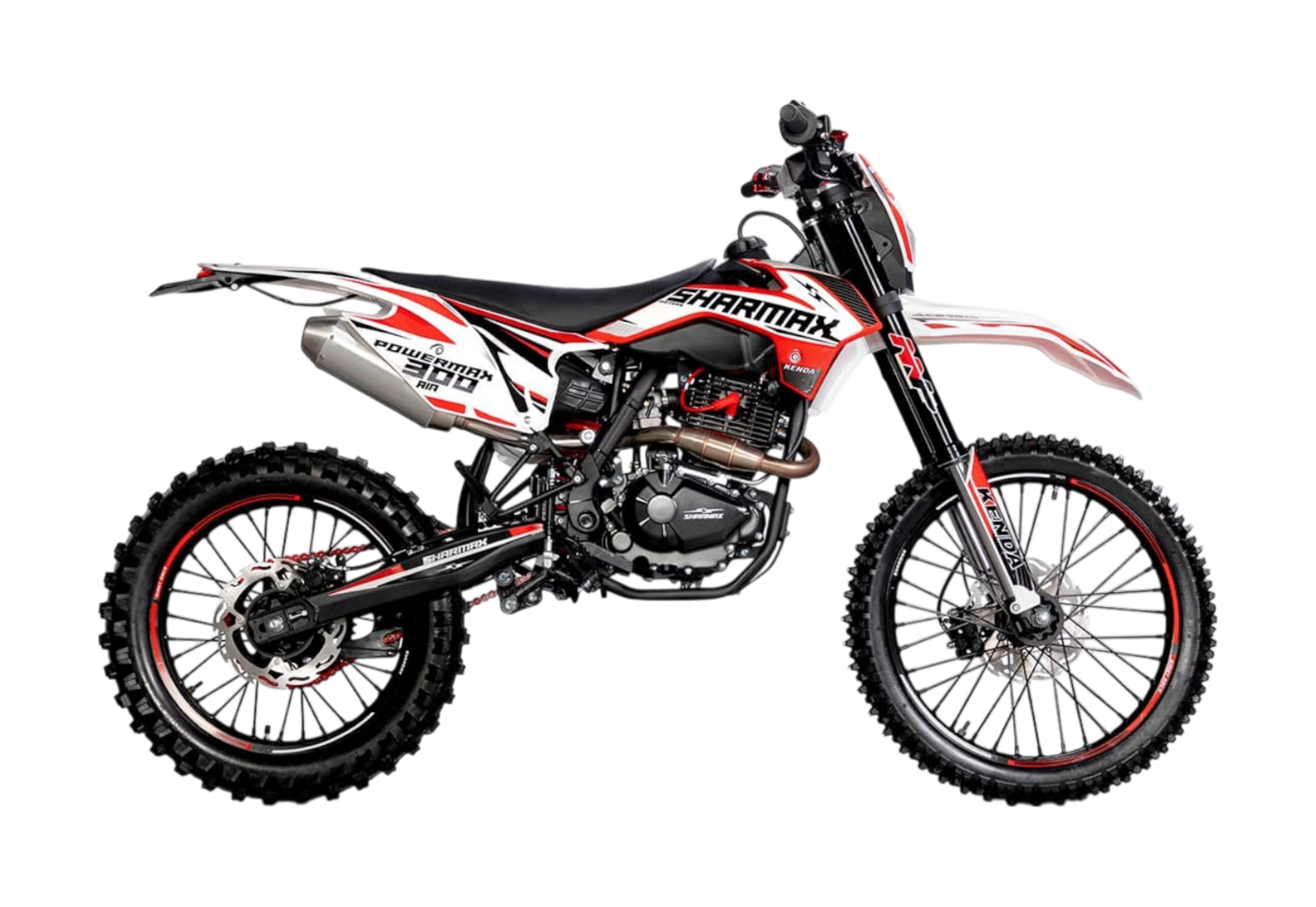 На мотоциклах серии Powermax установлены рама и детали премиального качества. Подвеска имеет несколько степеней настройки заднего амортизатора и передней вилки и может регулироваться в зависимости от ваших задач. Двигатель всё также от Zongshen, модификации меняются в зависимости от модели. Резина Kenda — лучшее, что можно представить на эндуро-байке. Мотоциклы этой серии отличаются большим ресурсом работы, а комплектующие на них имеют увеличенный запас прочности. Больших сложностей с ТО на байках серии Powermax также не возникнет благодаря качеству сборки и деталей.Завершение трилогии мотоциклов с воздушным охлаждением от компании Sharmax Motors. Sharmax Powermax 300 Air — один из самых крепких и надёжных байков на рынке. Отзывчивый и быстрый, мотоцикл Powermax 300 Air подарит ощущение превосходства на любой трассе. Премиальное качество и проверенные технологии легли в основу этой новинки сезона 2024-25. Мотоцикл Sharmax Powermax 300 Air был создан для тех, кто не боится добиваться новых вершин.Идеально сбалансированный двигатель 175 FMN-6 с балансировочным валом будто был создан для этого байка. Увеличенный объём 300 куб. см и мощность 27 л.с. — более чем достаточно для быстрого старта. Этот силовой агрегат сделан, чтобы показать оптимальное сочетание полезной мощности и низкого веса.6-ступенчатая коробка передач с шестернями из высокопрочного кованого металла почти не изнашивается с течением времени. Большинство подобных моделей оснащены 5-ступенчатой коробкой, в то время как Sharmax Powermax 300 Air даёт вам конкурентное преимущество.Nibbi PE 30 — один из лучших в своём классе. Карбюратор от легендарного американского бренда, установленный на десятках эндуро-байков во всём мире. Лёгкий старт, отсутствие провалов в работе двигателя и максимальная отдача мощности — всё это обеспечит Nibbi PE 30.Эргономичную подвеску можно настроить под любой стиль езды и вес райдера. Передняя вилка имеет регулировки демпфирования и отбоя. Задний амортизатор — регулировки демпфирования, отбоя, а также преднатяга пружины.Симметричная дуплексная рама из хромомолибденовой стали, позаимствованная у профессиональных гоночных байков, обеспечит оптимальную жёсткость и отзывчивость. Благодаря такой форме гонщик и байк становятся одним целым, с лёгкостью преодолевая любые барьеры.Руль на мотоцикле Sharmax Motors Powermax 300 Air изготовлен из прочного облегчённого алюминиевого сплава по технологии двойного сечения FATBAR. Цепкие грипсы позволяют кистям рук меньше уставать и дозировать открытие заслонки карбюратора максимально точно. Откидывающиеся ручки-неломайки станут приятным бонусом на самых хардовых маршрутах.Шины Kenda (21/18) буквально вгрызаются в грунт, на оставляя шансов соперникам на виражах. Агрессивный рисунок протектора и обеспечит идеальную проходимость на сложных участках. От грязи вас защитит прочный брызговик со стоп-сигналом.