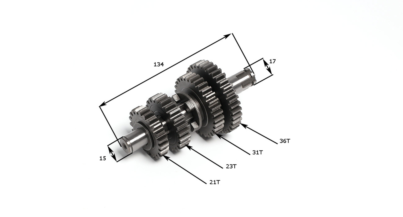 Вал КПП вторичный в сборе для мотор YX140/150/160.Длина вала 134ммДиаметр вала 17мм