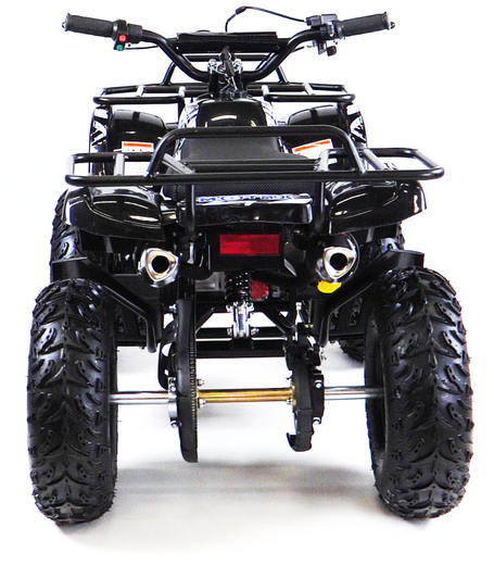 MOTAX GRIZLIK Х16 ES с электростартером и родительским пультом.Этот квадроцикл оборудован 6-дюймовыми колёсами и шинами с внедорожным протектором.Отлично подойдёт для детей от 3 до 8 лет.Квадроцикл оборудован компактным, двухтактным бензиновым двигателем объёмом 50 куб. см. в паре с фрикционным сцеплением центробежного типа. Это обеспечивает простоту и надежность конструкции. Квадроцикл имеет хорошую базовую комплектацию: он оборудован электрическим стартером, пультом дистанционного глушения и запуска двигателя, механическим ограничителем скорости, кнопкой быстрой остановки двигателя, яркими передними светодиодными фарами с режимом ближнего и дальнего света, раздвоенной системой выхлопа, механическим ручным стартером с механизмом легкого запуска. За счёт этого механизма существенно снижено усилие при запуске двигателя, с этой задачей может справиться и ребенок. Простота управления обусловлена фирменной передней подвеской полузависимого типа, которая позволяет сохранить стабильность в движении и лёгкость рулевого управления. Передние и задние механические дисковые тормоза способны эффективно остановить лёгкий и прочный квадроцикл.Детский квадроцикл оборудован передним и задним багажниками и прочным передним бампером. Эта модель отлично подойдёт как для получения первого опыта вождения, так и для активной езды по дачным дорожкам и лесопарковым зонам. Квадроцикл будет радовать ребенка круглый год! Он легко преодолевает небольшие препятствия, заезжает в горку, на бордюр. Ему не страшны лужи, грязь и песок.