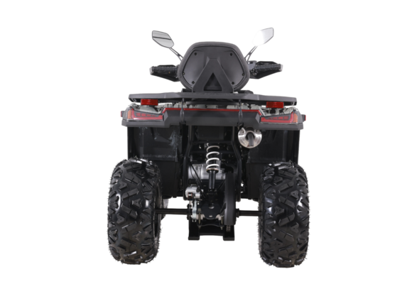 Передняя маятниковая (рычажная) подвеска обеспечивает отличную управляемость и комфорт во время движения по неровной местности. С дорожным просветом в 150 мм и высотой по сидению 800 мм, квадроцикл подходит для пользователей ростом от 150 см и выше, обеспечивая удобство и безопасность.