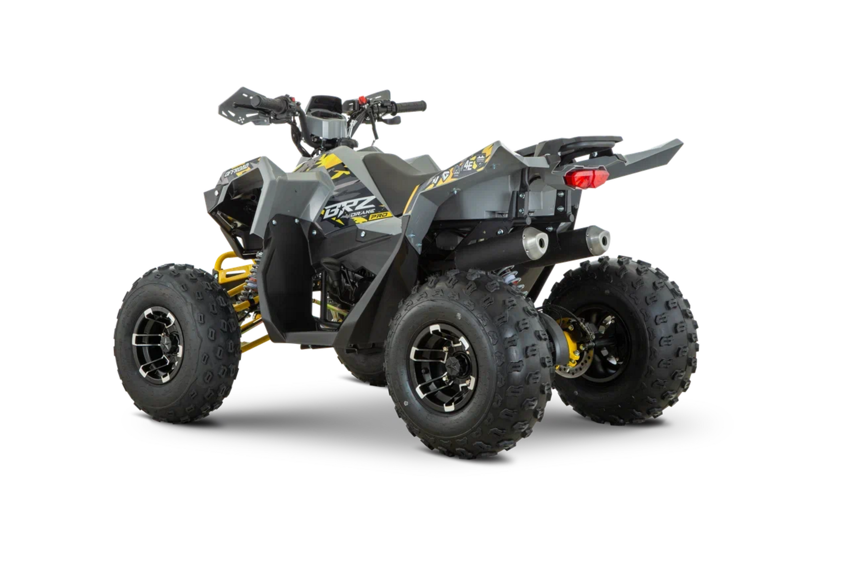 BRZ Drake 125 Pro — максимум кайфа в компактном корпусе.Если ты хочешь маленький, но по-настоящему «взрослый» квадроцикл — Drake 125 Pro именно для тебя. Это обновлённая версия, только жёстче, мощнее и надёжнее.Техника, которая не подведёт:– Двигатель 125 см³, 4-тактный, с воздушным охлаждением — стабильная работа и уверенная тяга
