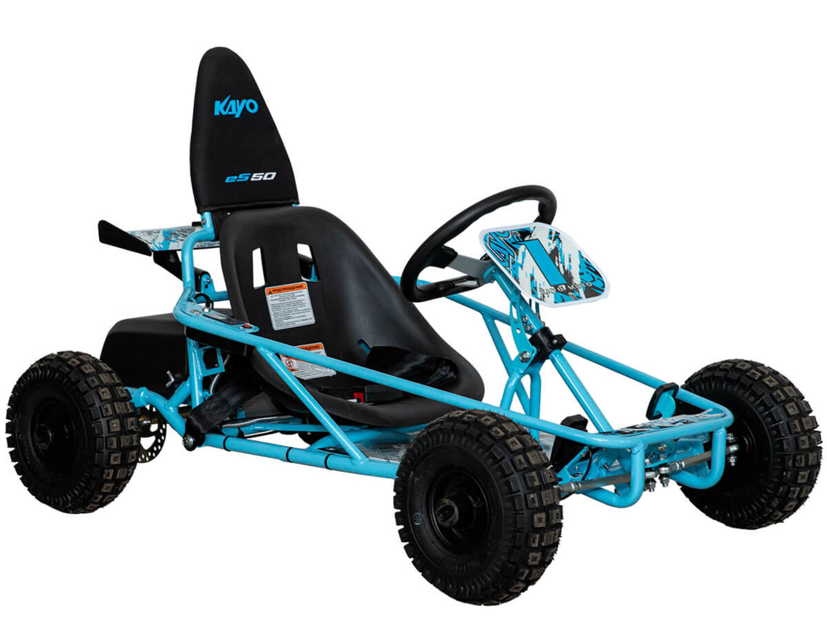 Квадроцикл KAYO еS50 – детская модель с электрическим двигателем для весёлых и безопасных заездов на природе.Оснащён щёточным двигателем постоянного тока мощностью 800 Вт с воздушным охлаждением. Обеспечивает плавную и бесшумную езду без выхлопных газов. Свинцово-кислотный аккумулятор 36V9AH обеспечивает около 70 минут непрерывной работы на одном заряде. Полная зарядка аккумулятора занимает 5-6 часов.Имеет 2 скоростных режима: 12 км/ч и 19 км/ч. Трансмиссия представлена 2-ступенчатой коробкой передач с реверсом.На квадроцикле используются колёса диаметром 3 дюйма. На задних колёсах установлены механические дисковые тормоза.Габариты 1100х700х720 мм. Высота по седлу 175 мм, клиренс 95 мм, колёсная база 850 мм. Сухой вес 43 кг.