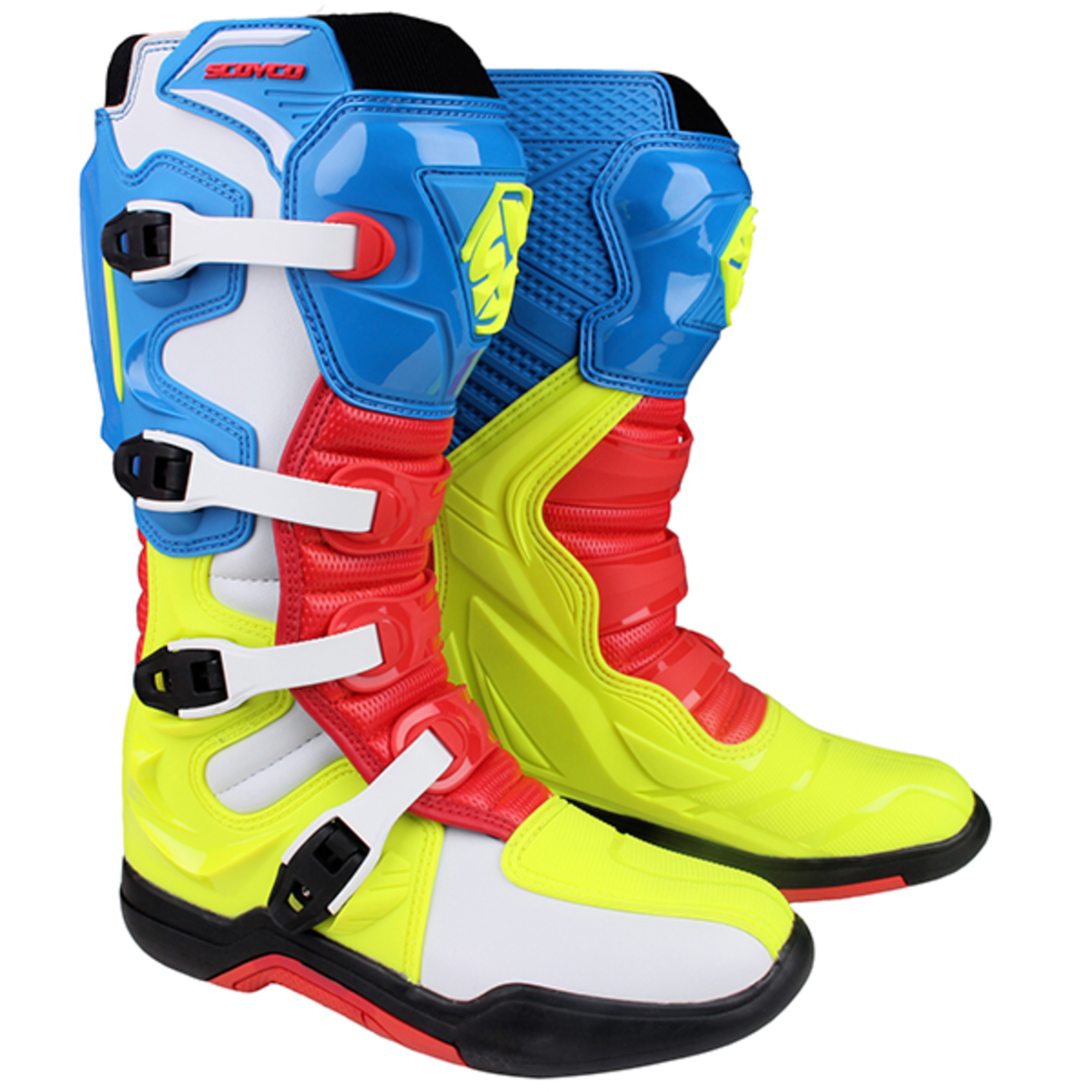 Главная ... Ботинки Мотоботы Scoyco MBM003 высокие синий/красный/желтый 44