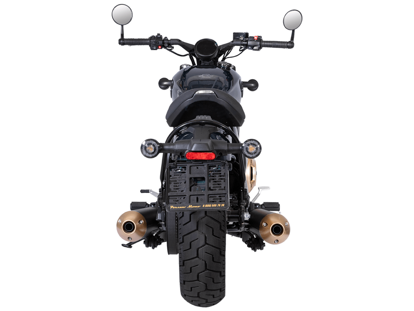Мотоцикл CYCLONE RA600 Bobber – одноместный круизёр, готовый рассекать по городу и скоростным трассам. Лёгкая в управлении и надёжная модель с 550-кубовым двигателем, имеющая комфортный расход топлива для ежедневных поездок, хороший запас хода и оптимальную длину передач для маневрирования в потоке.Мотоцикл оснащён 2-цилиндровым 4-тактным двигателем ZS550SR жидкостного охлаждения с 4 клапанами на каждом цилиндре и 2 распредвалами. Двигатель имеет объём 550 см³ и способен обеспечить мощность в 59 л.с. при 8500 об/мин. Максимальный крутящий момент в 55 Нм достигается при 6500 об/мин. Подачу топлива обеспечивает инжектор BOSCH. Механическая коробка передач имеет 6 ступеней и схему 1-N-2-3-4-5-6.Максимальная скорость 165 км/ч.Объём топливного бака 14,5 литра.Колёса с легосплавными дисками имеют диаметр 16 дюймов. В качестве подвески используются телескопическая вилка и регулируемый маятник с моноамортизатором. Мотоцикл оснащён датчиками давления в шинах, показатели от которых выводятся на приборную панель. Клиренс в 150 мм позволяет комфортно проходить препятствия на дороге.Тормозная система произведена компанией J.JUAN, входящей в холдинг BREMBO. На оба колеса установлены гидравлические дисковые тормоза. Спереди установлен 2-поршневой суппорт, сзади используется однопоршневой суппорт с плавающей скобой. Дополнительную безопасность обеспечивают системы ABS и TCS. Они повышают устойчивость при экстренном торможении и на сложных поверхностях.Габариты модели 2190х855х1115 мм, снаряженная масса 198 кг. Высота по седлу 725 мм, колёсная база 1510 мм. Мотоцикл оснащён USB-портом для зарядки устройств