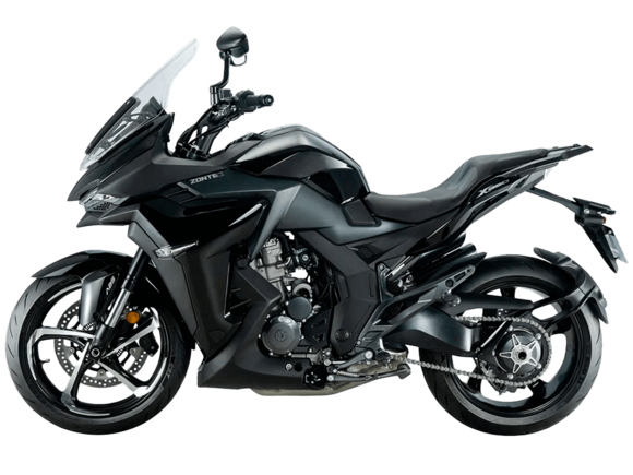 Мотоцикл ZONTES ZT350-X1 – турист со стремительным современным дизайном. Хорошо подходит как для повседневных поездок по городу, так и для покорения дальних маршрутов.Силовая установка представлена одноцилиндровым 4-тактным двигателем ZT184MP с 4 клапанами и 2 верхними распредвалами. Двигатель имеет объём 348 см³ и обеспечивает мощность в 39 л.с. Оснащён инжектором BOSCH и системой жидкостного охлаждения. Механическая коробка передач имеет 6 ступеней и схему 1-N-2-3-4-5-6. Запуск двигателя осуществляется с помощью бесключевого доступа.Ёмкость топливного бака 19 литров.Колёса представлены литыми алюминиевыми дисками диаметром 17 дюймов. На мотоцикл установлены датчики давления в шинах, показатели от которых выводятся на приборную панель. Для подвески спереди используется телескопическая вилка, сзади – моноамортизатор. Гидравлические дисковые тормоза произведены испанской компанией J.JUAN, входящей в холдинг BREMBO.Для освещения используется яркая LED-оптика, а приборная панель представлена цифровым дисплеем. Рычаги тормоза, сцепления и лапки КПП можно отрегулировать. Имеется 2 USB-порта.Габариты мотоцикла 2055х795х1330 мм. Колёсная база 1395 мм. Высота по седлу 795 мм. Вес 169 кг.