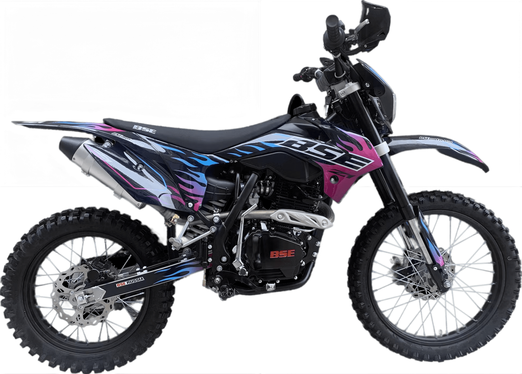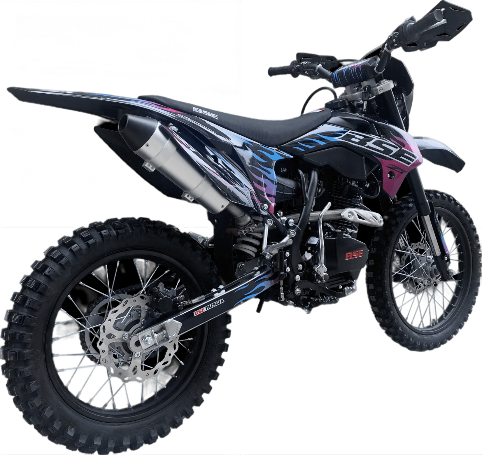 Кроссовый мотоцикл BSE Z1 19/16 удачный, сбалансированный и технологичный мотоцикл для начинающих. Компактный, лёгкий, надёжный, простой в управлении мотоцикл с ярким дизайном.Z1 оснащен мощным, но в тоже время послушным и отзывчивым мотором Zongshen 150 куб см с вертикальным расположением цилиндра, надежным карбюратором Nibbi и 5-ступенчатой механической трансмиссией. Запатентованная прочная стальная рама BSE, увеличенная колёсная база, вилка “перевертыш”, мощная тормозная система HSK Racing, внедорожная резина Yuanxing, колёса размером 19/16 позволят спокойно преодолевать легкий и средний уровень оффроуда. Препятствия, броды брёвна – Z1 все под силу.BSE Z1 отлично подходит для лёгких мотопрогулок по пересечённой местности с пассажиром благодаря удобному сиденью, подножкам заднего пассажира и невысокой высоте мотоцикла.
