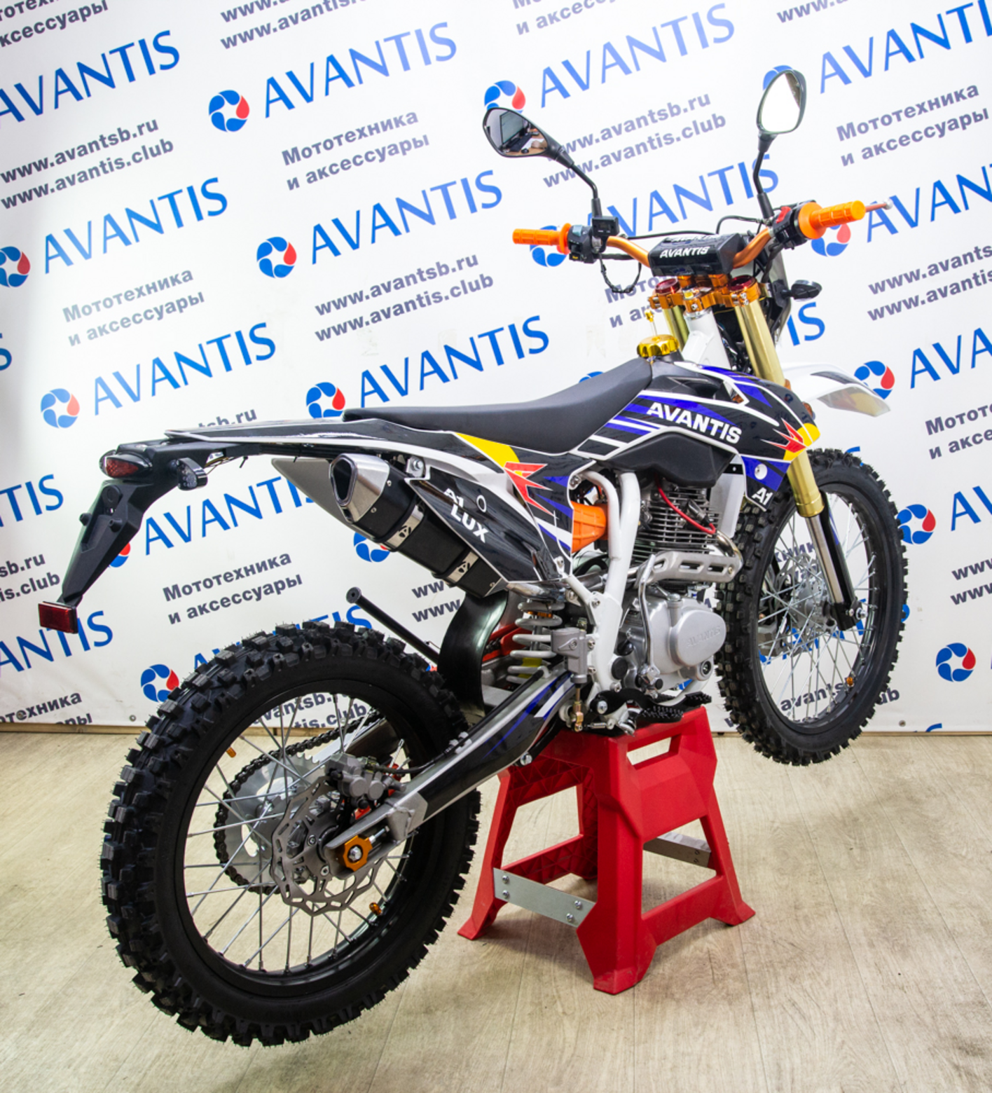 Этот мотоцикл подходит для непростых соревнований в «Эндуро» стиле, с многочисленными препятствиями, испытаниями, требующими от мотоциклиста предельной выносливости.Байк AVANTIS A2 с люксовой комплектацией подходит для движения по городу и поставляется со всеми необходимыми для этого элементами: звуковым сигналом (клаксоном), передними и задними поворотниками, стоп-сигналом, зеркалами заднего вида. Эти атрибуты делают перемещение на мотоцикле более комфортным и безопасным. С ними райдер может перемещаться по городу и за его пределами при любых погодных условиях, в любое время суток