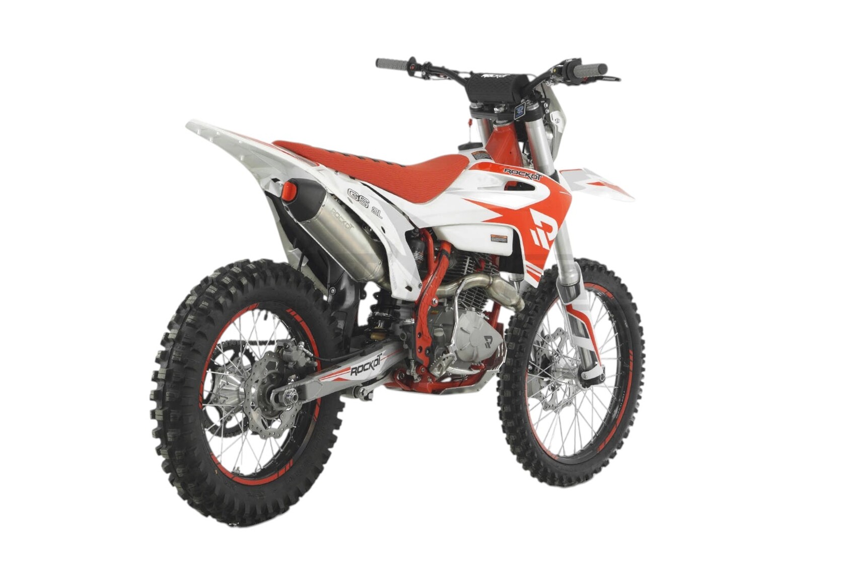 ROCKOT GS 2-L Outlander - полноразмерный эндуро мотоцикл в пластике GASGAS на популярном двигателе 172FMM-5 PR250. Высота по седлу в 920 мм и колесная база 1465 мм обеспечат отличную управляемость и комфортное вождение даже для невысоких райдеров. Подвеска мотоцикла в паре с качественными шинами создают все условия для достижения максимально качественного зацепа с поверхностью трассы.ROCKOT GS 2-L Outlander выполнен в исключительно ярком и запоминающемся дизайне, в расцветке которого преобладают красный, белый и серебристый цвета. Такая расцветка подчеркивает спортивный характер и в то же время визуальную легкость мотоцикла. Облицовочный пластик в стиле GASGAS 21` выделяет мотоциклы серии GS среди других эндуро мотоциклов. Элементы передней и задней подвесок, двигатель, защита двигателя окрашены в серебристый цвет, благодаря чему отлично сочетаются со стильной графикой, нанесенной на пластик байка. Белый топливный бак позволит постоянно контролировать наличие топлива даже во время езды. Рама окрашена в красный цвет и придает мотоциклу более агрессивный, спортивный вид под стать его возможностям. За адреналин и яркие эмоции от поездок отвечает один из самых популярных двигателей - Zonsen (Zongshen) PR250 172FMM-5. Неспроста данный мотор заслужил свое признание среди эндуро сообщества. Это один из самых надежных и проверенных временем двигателей китайского производства. Фактический объем двигателя составляет 249 см³ и двухклапанную систему ГРМ, что в паре с карбюратором PE30 позволяет ему развивать мощность в 21 лошадиную силу. Коробка передач - пятиступенчатая с многодисковым сцеплением в масляной ванне. Крутящий момент в 18 Nm достигается уже при 6500 об/минуту, а его равномерное распределение делает этот мотор идеальным для эндуро. Также для обеспечения наивысшего крутящего момента в диапазоне низких оборотов, ROCKOT GS 2-L Outlander оснащен выхлопной системой с резонатором “PowerBomb”. Балансирный вал значительно снижает вибрации, что делает поездки и тренировки более комфортными.ROCKOT GS 2-L Outlander сконструирован на основе рамы S8, геометрия которой была специально спроектирована для эндуро. Угол наклона вилки сделан таким образом, чтобы придать мотоциклу наилучшую управляемость и маневренность. Особенность рамы заключается в использовании труб восьми- и шестигранного сечения. Применение хром-молибденового сплава стали сделало раму мотоцикла более легкой и невероятно прочной.Рама и двигатель надежно закрыты от ударов толстой алюминиевой защитой, а боковая часть рамы - прочными пластиковыми накладками. Спереди установлена телескопическая вилка перевернутого типа длиной 910 мм. Толщина пера составляет 41 мм, что является оптимальным решением для полноразмерного эндуро мотоцикла, способного выступать в эндуро соревнованиях класса “Бронза”.Задняя подвеска состоит из регулируемого (сжатие/отбой/преднатяг) моноамортизатора, длиной 465 мм, и рычажной системы прогрессии, благодаря которой рабочий ход задней подвески значительно увеличивается.ROCKOT GS 2-L Outlander имеет колеса стандартного для эндуро размера - 21/18 дюймов. С завода мотоцикл поставляется на фирменных колесных дисках KKE, отличающихся своей высокой прочностью. Спереди установлена шина ROCKOT RT-909, являющаяся аналогом Mitas C-19, а сзади ROCKOT RT-754. Шины имеют мягкий компаунд medium soft и обеспечивают отличное сцепление с трассой как на мягком, та