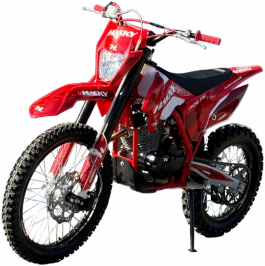 Hasky F5 Ride New представляет собой самую доступную модель в линейке бренда, отличаясь от старшей F5 PRO 2025 комплектацией, но сохраняя при этом надежность и качество, присущие семейству Hasky. Этот среднеразмерный эндуро-мотоцикл на колесах 21"/18" построен на прочной раме K5.В основе модели лежит надежный двигатель ZS172FMM, оснащенный балансировочным валом для снижения вибраций, пятиступенчатой коробкой передач и комбинированной системой запуска (электростартер + кик-стартер). Подачу топлива обеспечивает производительный карбюратор Nibbi PE 28. Управляемость и комфорт на бездорожье обеспечивают передняя регулируемая вилка MTN диаметром 43 мм и задний моноамортизатор с прогрессией.Мотоцикл комплектуется передним колесом 21" с покрышкой 80/100-21 и задним 18" с покрышкой 110/100-18, оснащенными фиксаторами. Эргономика управления улучшена за счет новых пультов в стиле KTM, ручки газа Nibbi и грипсы lock-on. Защита двигателя, рамы и перьев повышает долговечность. Дополнительные удобства включают мощную галогеновую фару и счетчик моточасов.Особое внимание уделено безопасности и надежности: воздушный фильтр увеличенной площади изготовлен из негорючего материала, а вся проводка мотоцикла полностью влагозащищенная. Новая усиленная графика придает модели стильный вид. Hasky F5 Ride New предлагает отличное сочетание цены, надежности и оснащения для начинающих и опытных райдеров.
