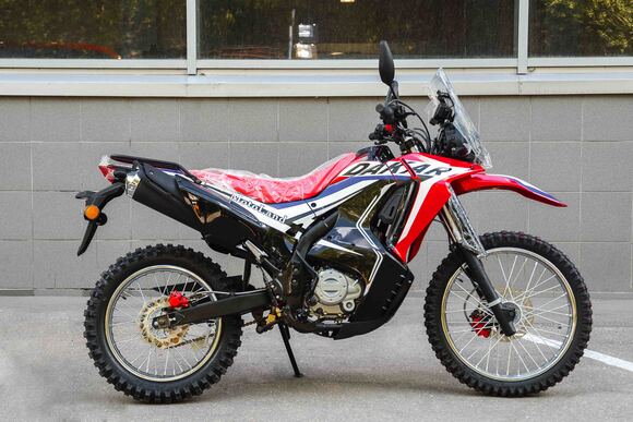 Новинка 2020 года - Мотоцикл Motoland DAKAR 250 LT.Данный мотоцикл прост в управлении и неприхотлив в обслуживании и подходит мотолюбителям Эндуро любого возраста,и опыта вождения, которым нужна техника для поездок из точки А в точку Б и обратно по дорогам и легкому бездорожью.Motoland DAKAR 250 LT оснащен одноцилиндровым четырехтактным двигателем 165FMM (CBB250) мощностью 16 л. с. и объемом 250 см³ с воздушным охлаждением. Установлен карбюратор PZ 30 с ускорительным насосом увеличивает скорость разгона.Для запуска двигателя можно использовать электростартер или кикстартер.Механическая трансмиссия содержит 5 передач.Мотоцикл оснащен надежными передними и задними тормозами с двух поршневыми тормозными суппортами.Колёса спицованные, размер заднего колеса — 18 дюймов, переднего — 21 дюйм. Весит 120 кг, выдерживает нагрузку до 150 кг.У нас Вы можете купить этот мотоцикл с бесплатной доставкой по РФ и гарантией до года. Также его можно приобрести в рассрочку или в кредит.