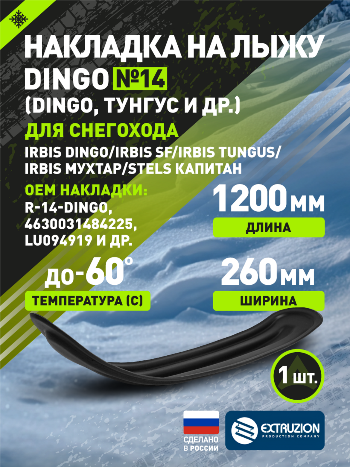 Главная ... Накладки на лыжи Накладка на лыжу №14 для снегохода Dingo ( Dingo, Тунгус и др.) 1200*260*6 (1шт)