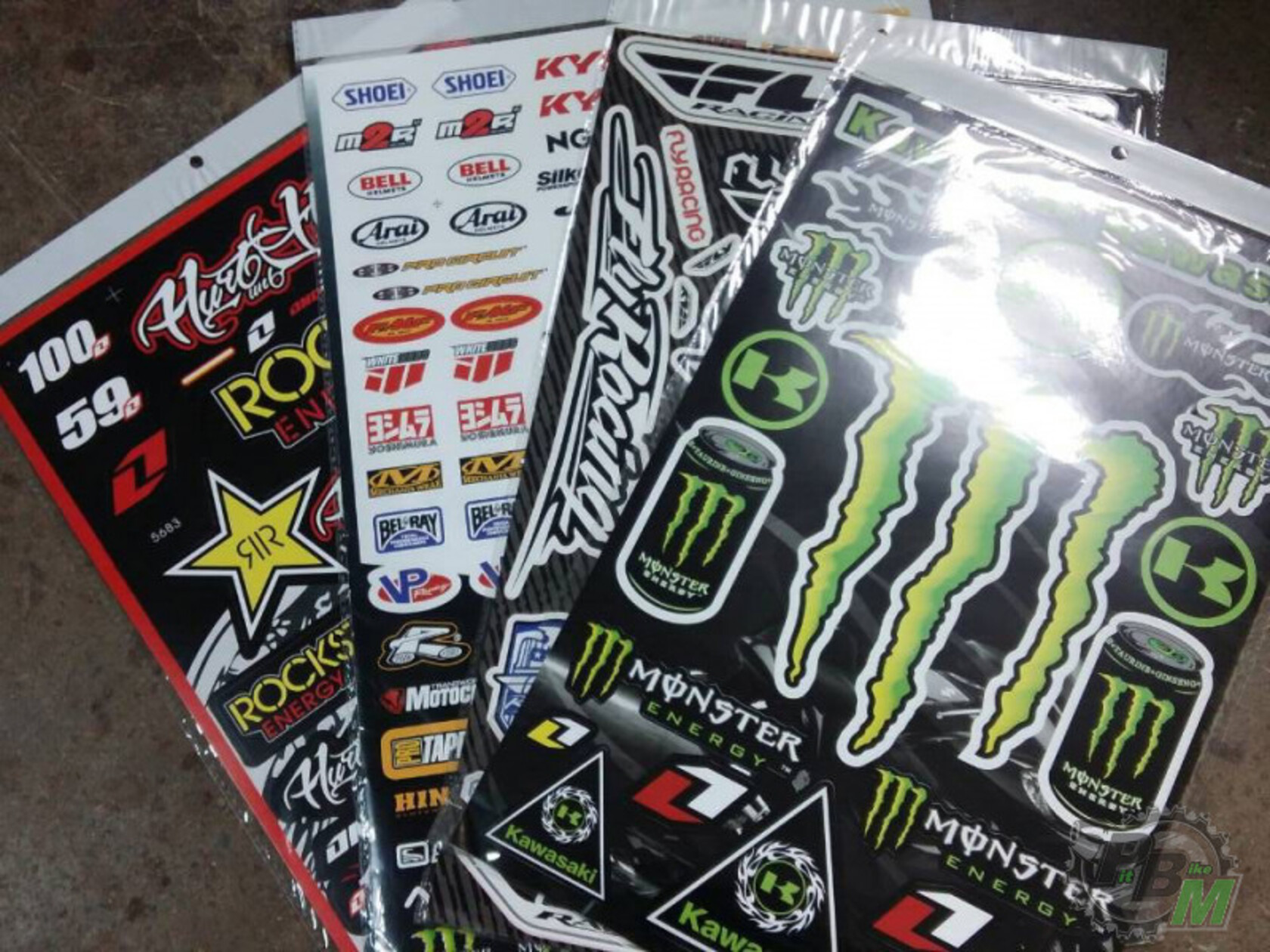 Листы с наклейками, которые можно приклеить куда угодно: на мотоцикл, на машину, на дверь, на лоб.