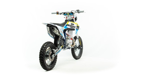 Питбайк Motoland TCX125 14/12 идеален для поездок по грунтовым дорогам и бездорожью. Хорошо чувствует себя на мягком и среднем грунте, разгоняется до 90 км/ч. Оснащён спортивными траверсами, весит всего 70 кг.Питбайк прост в управлении и не требует специального ухода, подойдёт как новичкам, так и любителям мотокросса.Питбайка отличный узнаваемый дизайн. Конструкция подчёркивает неуступчивый спортивный характер, который не остановится ни перед одним препятствием.Комбинированный прочный пластик не ломается при сгибании.Передняя подвеска — телескопическая вилка перевёрнутого типа (с регулировкой по давлению воздуха), которая отлично подходит для преодоления ям, и других неровностей плохих дорог или их отсутствия. Задняя подвеска маятниковая с моноамортизатором. Мотоцикл оснащён одноцилиндровым четырёхтактным двигателем с воздушным охлаждением. Надёжный мотор 152FMI мощностью 8 л. с. и объемом 125 см³ , установленный на усиленной стальной раме, коробка передач автоматическая, четырёхступенчатая.Тормоза дисковые, передний тормозной суппорт двухпоршневой, задний — однопоршневой.Питбайк относится к недорогим моделям, которые при должной эксплуатации работают без сбоев. Не занимает много места в гараже. При необходимости в нём легко сменить любую повреждённую деталь.