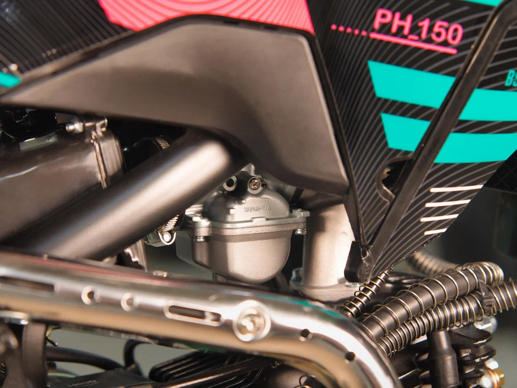 Питбайк BSE PH 150 19/16 AK47 Aquamarine (015). Основа PH150 - рама из хромомолибденовой стали повышенной жесткости с литыми усилителями - фирменный знак качества завода BOSUER! Cиловая установка питбайка - надежный и тяговитый 4-тактным двигателем YX объёмом 150 см3 с воздушным охлаждением. Максимальная мощность – внушительные 15 лс. Питает мотор карбюратор MIKUNI VM22. Питбайк оснащен 4-ступенчатой механической трансмиссией. Запуск мотора осуществляется при помощи электростартера или кик-стартера. Подвески с большими ходами: передняя - телескопическая вилка перевёрнуто типа, задняя- моноамортизатор.LED фара головного света, "злая" резина, vощная тормозная система HSK Racing, японские колесные подшипники NTN, защита мотора, руль ProTaper - питбайк полностью укомплектован всем необходимым для покатушек и гонок.PH150 – профессиональный выбор самого продвинутого "питбайкера".