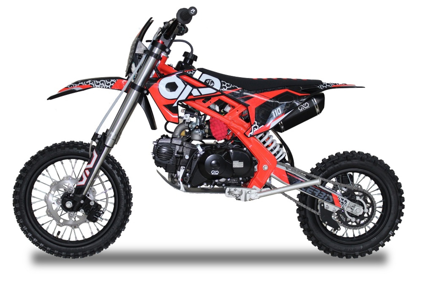 Питбайк OXO Base 110 A (RD-001) — это компактный и мощный мотоцикл, идеально подходящий для любителей активного отдыха и начинающих райдеров. Он оснащён одноцилиндровым 4-тактным двигателем ZS152FMH-5 с воздушным охлаждением, который имеет объем 110 куб. см и развивает мощность в 7 лошадиных сил. Такое сочетание мощности и компактности обеспечивает отличную маневренность и динамику на любых типах трасс.Система зажигания CDI гарантирует надёжный запуск двигателя, который может осуществляться как электрическим стартером, так и кик-стартером, что удобно в различных ситуациях. Автоматическая коробка передач упрощает управление питбайком, делая его доступным для пользователей с минимальным опытом вождения.Подача топлива осуществляется через карбюратор PZ22, что гарантирует уверенную работы мотора и экономичный расход топлива. Колеса разного диаметра (передние 60/100 R-14 и задние 80/100 R-12) гарантируют уверенное сцепление с дорогой и превосходную проходимость по труднопроходимой местности.Безопасность езды обеспечивают дисковые тормоза на каждом колесе, которые гарантируют надежное торможение в самых различных ситуациях. Передний амортизатор - перевернутая телескопическая вилка, а задний - моноамортизатор, оба нерегулируемые, что снижает необходимость в частом обслуживании и упрощает эксплуатацию..