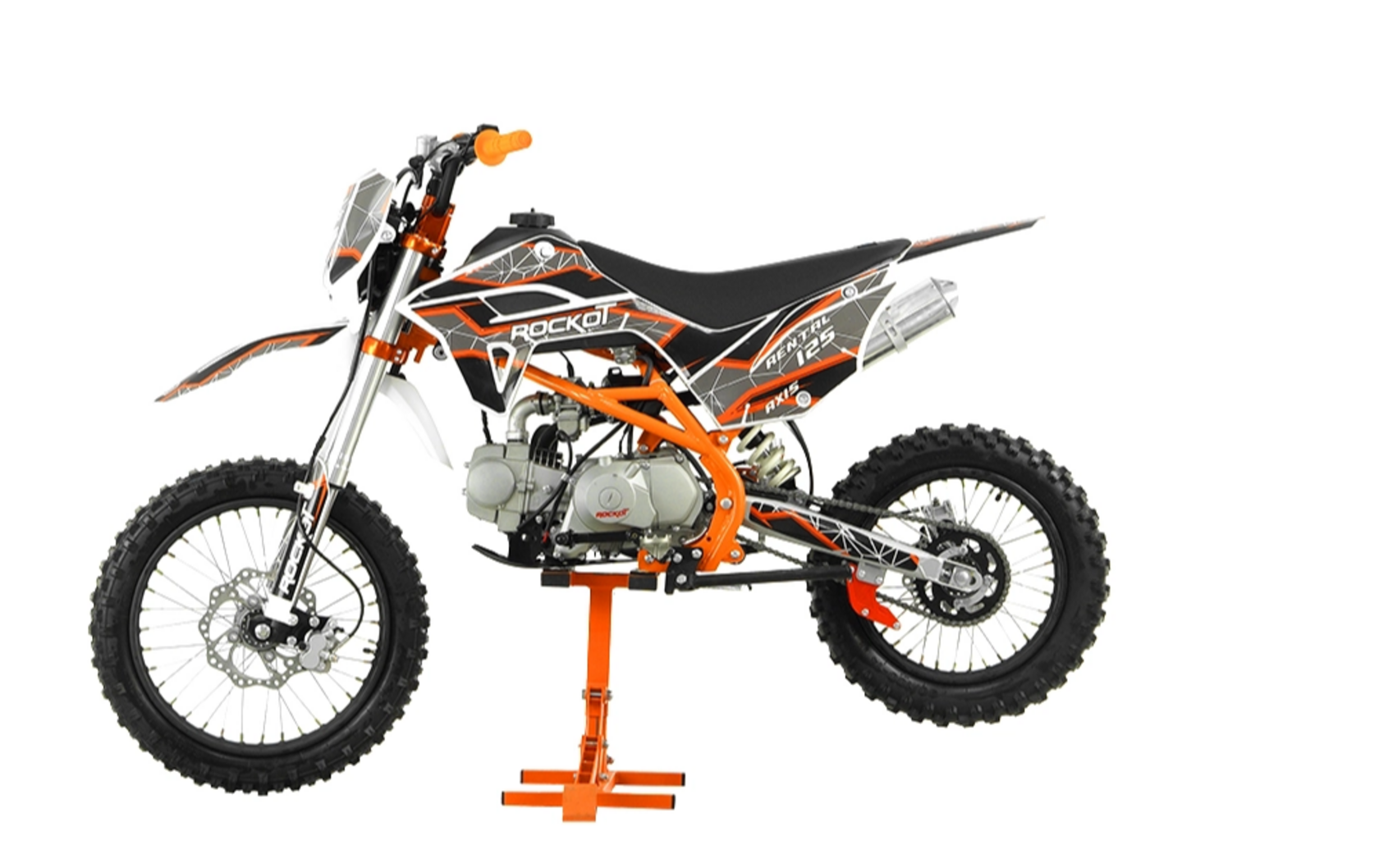 ROCKOT RENTAL 125 Axis 2.0 - питбайк созданный для начинающих райдеров, но имеющий при этом достаточно хорошую комплектацию. Колесная база питбайка равна 1220 мм и высоте по седлу - 850 мм, что подойдет для детей и взрослых, ростом от 150 см.В отличии от многих питбайков, здесь установлены двухпоршневые тормозные суппорты и спереди и сзади. Тормозные диски увеличенного радиуса 220 мм спереди и 190 мм сзади. Задняя тормозная машинка защищена специальной металлической пластиной, что позволит уберечь ее от повреждения при боковых ударах и падениях питбайка.Питбайк ROCKOT RENTAL 125 Axis оснащен усиленной цепью KMC 428H GOLD (золотая), не уступающая по качеству японским цепям фирмы DID. Приводная ведомая звезда на 41 зуб, произведенная из стали, что положительно сказывается на ресурсе данного узла.Питбайк ROCKOT RENTAL 125 Axis, благодаря своим положительным качествам, а именно: малый вес, небольшая высота по седлу, надежный двигатель с полуавтоматической трансмиссией – заслужил большую популярность среди новичков. Также, выгодно отличает его от других питбайков – хорошая комплектация с большим количеством предустановленных тюнинг элементов..