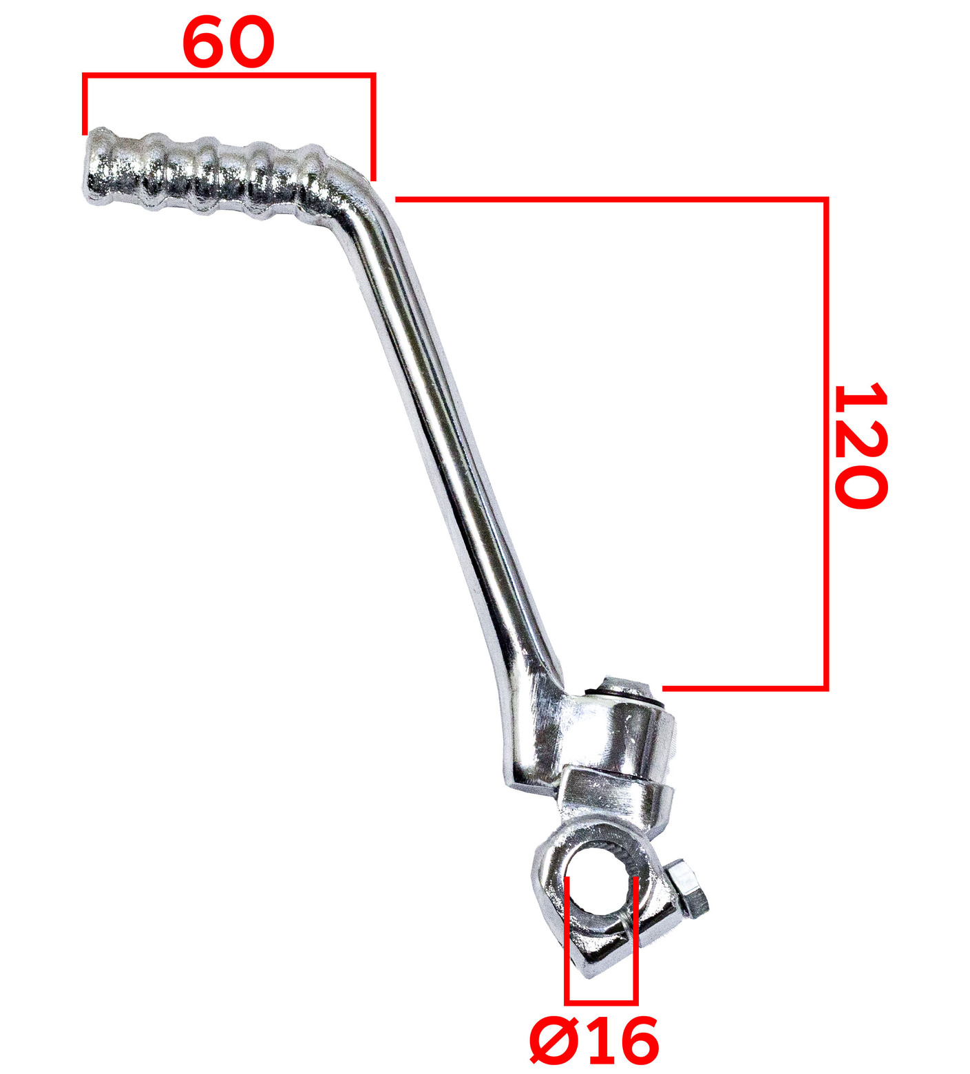 • Рычаг кикстартера из стали для питбайков с посадочным диаметром 16мм. Предназначен для горизонтальных двигателей 140-190сс. Обеспечивает надежный запуск двигателя, устойчив к механическим нагрузкам и деформации.
