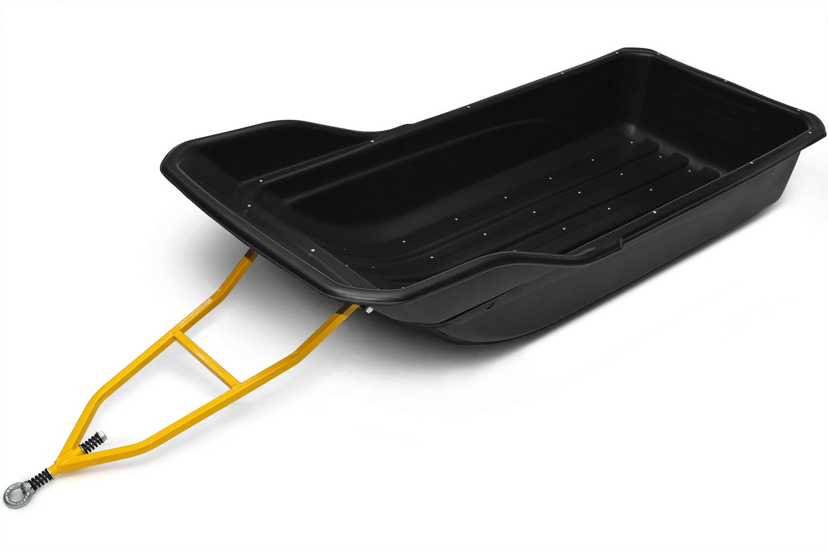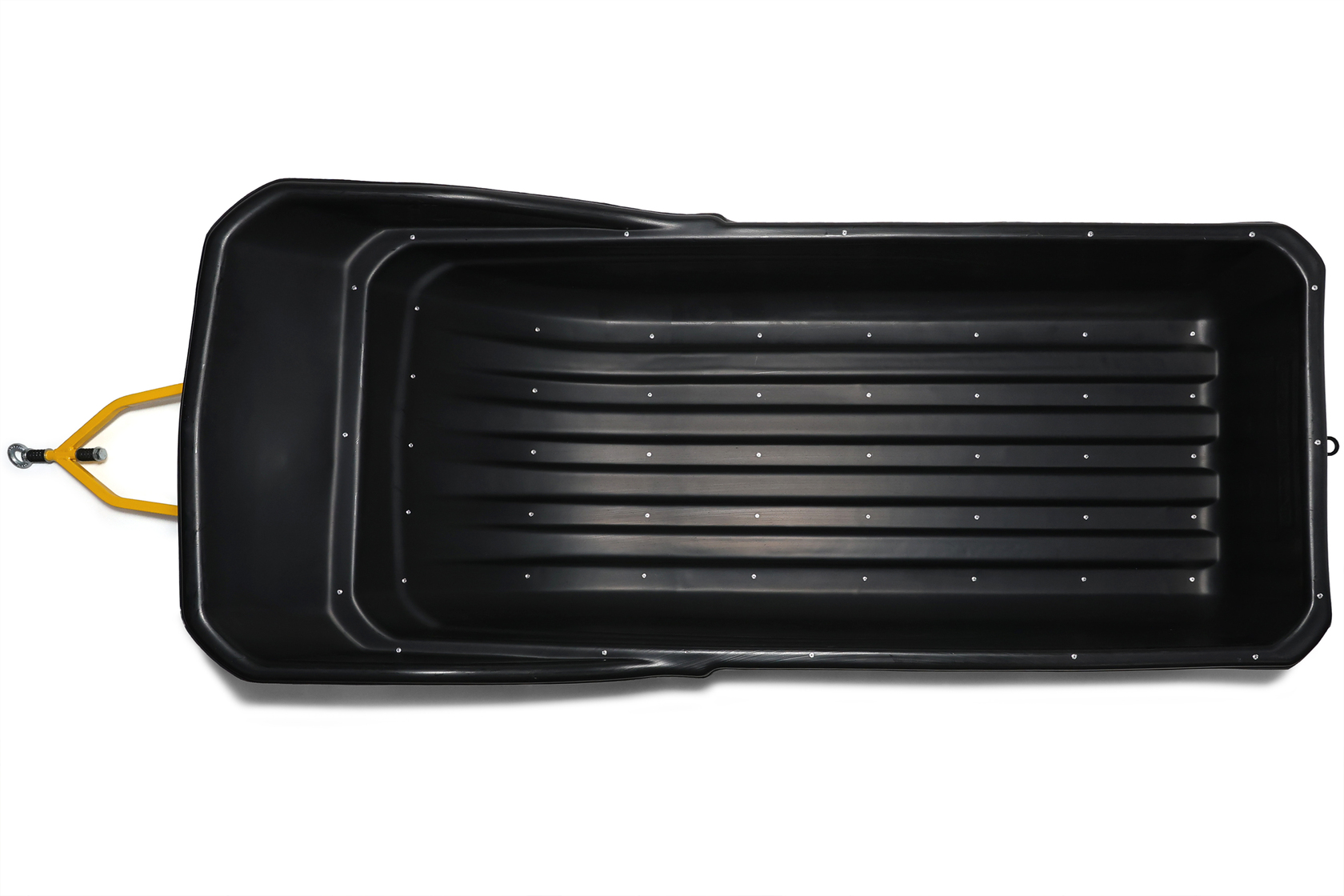 • Крупногабаритные сани-прицеп для профессионального использования с снегоходами и мотобуксировщиками. Увеличенные габариты 1900×860×490 мм обеспечивают повышенную вместимость для перевозки объемных грузов. Изготовлены из сверхпрочного ПНД с УФ-стабилизацией. Полная комплектация сцепным устройством, стропами обвязки и накладными полозьями.