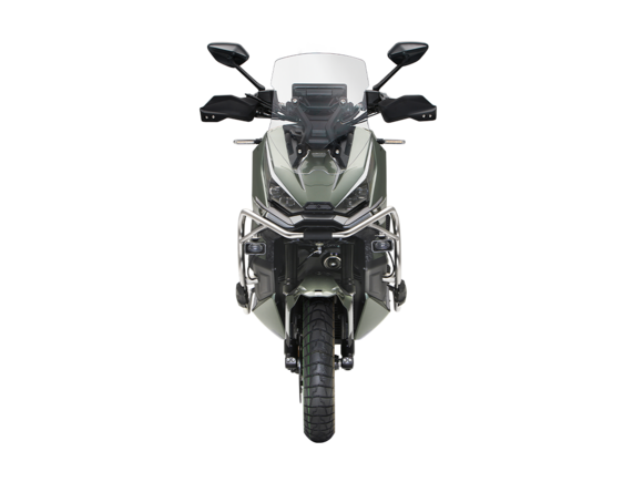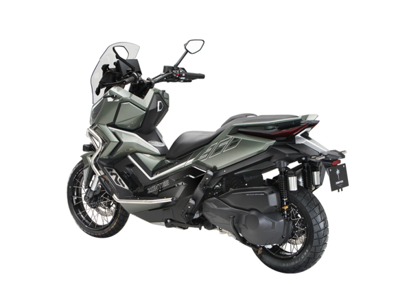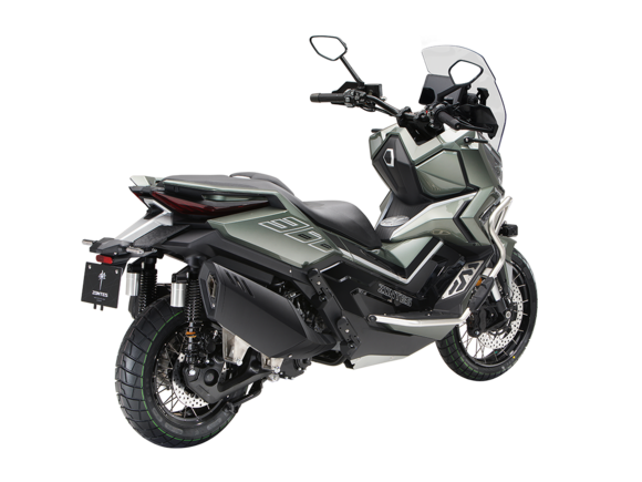 Скутер ZONTES ZT368-G – максискутер двойного назначения, готовый пронестись по улицам города за его пределы и отправиться по грунтовым тропам прокладывать свой маршрут туда, куда вам потребуется. Регулируемая подвеска с перевёрнутой телескопической вилкой спереди обеспечит отличную управляемость и устойчивость в любых условиях.Силовая установка представлена одноцилиндровым 4-тактным двигателем. Двигатель имеет объём 368 см³ и обеспечивает мощность в 38,8 л.с. Оснащён инжектором BOSCH, системой жидкостного охлаждения и вариатором. Запуск двигателя осуществляется с помощью бесключевого доступа.Ёмкость топливного бака 17,5 литра.Колёса имеют диаметр 17 дюймов спереди и 14 дюймов сзади. Для подвески спереди используется телескопическая вилка перевёрнутого типа, а сзади установлены 2 гидравлических амортизатора. Гидравлические дисковые тормоза произведены компанией J.JUAN, входящей в холдинг BREMBO. Мотоцикл также оснащён 2-канальной ABS-системой, противобуксовочной системой TCS System и датчиками давления в шинах.ZT350-G оборудован яркой LED-фарой, мультимедийной приборной панелью с TFT-дисплеем, имеются 2 USB-порта.Габариты скутера 2230х925х1290 мм. Колёсная база 1560 мм. Высота по седлу 795 мм. Вес 198 кг.