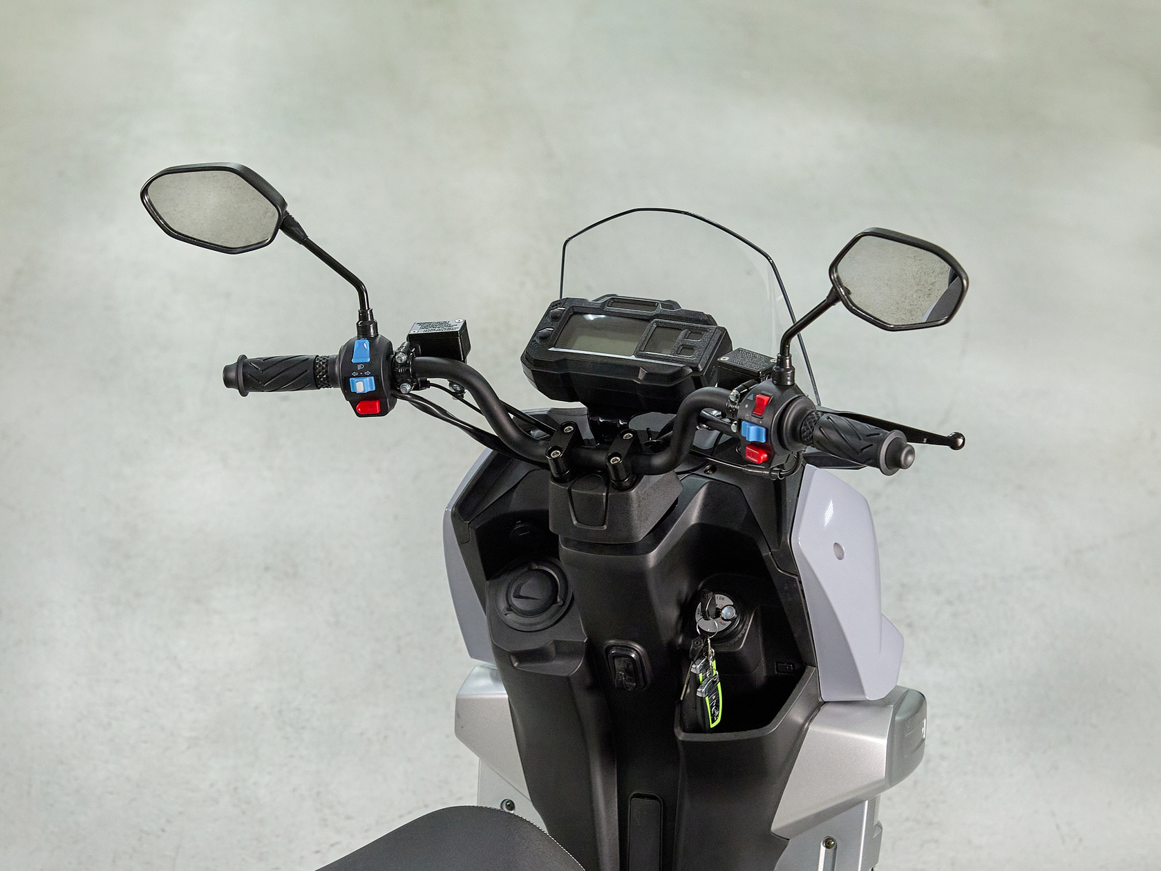 • Эксклюзивный дизайн с X-образной LED-фарой: Яркая и мгновенно узнаваемая оптика задает новый стандарт стиля в классе. Это не просто скутер, это заявление о вашей индивидуальности. Плюс двухрежимные противотуманные фары для полной видимости в любую погоду.