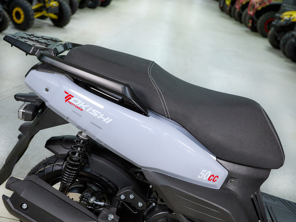 Познакомьтесь с эволюцией легенды! Третье поколение культового турэндуро скутера сочетает в себе все лучшие черты предшественников — мощный 170-кубовый двигатель, не требующий прав категории «А», и готовность к любым дорогам — с совершенно новым агрессивным дизайном. X-образная фара, белоснежный окрас и фирменный стиль Tokishi выделят вас из толпы и в городе, и на бездорожье.