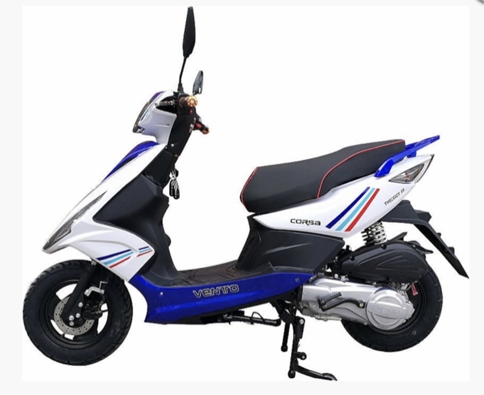 Главная ... Скутеры Скутер VENTO CORSA 49 cc (150) сигнализация Сине-белый