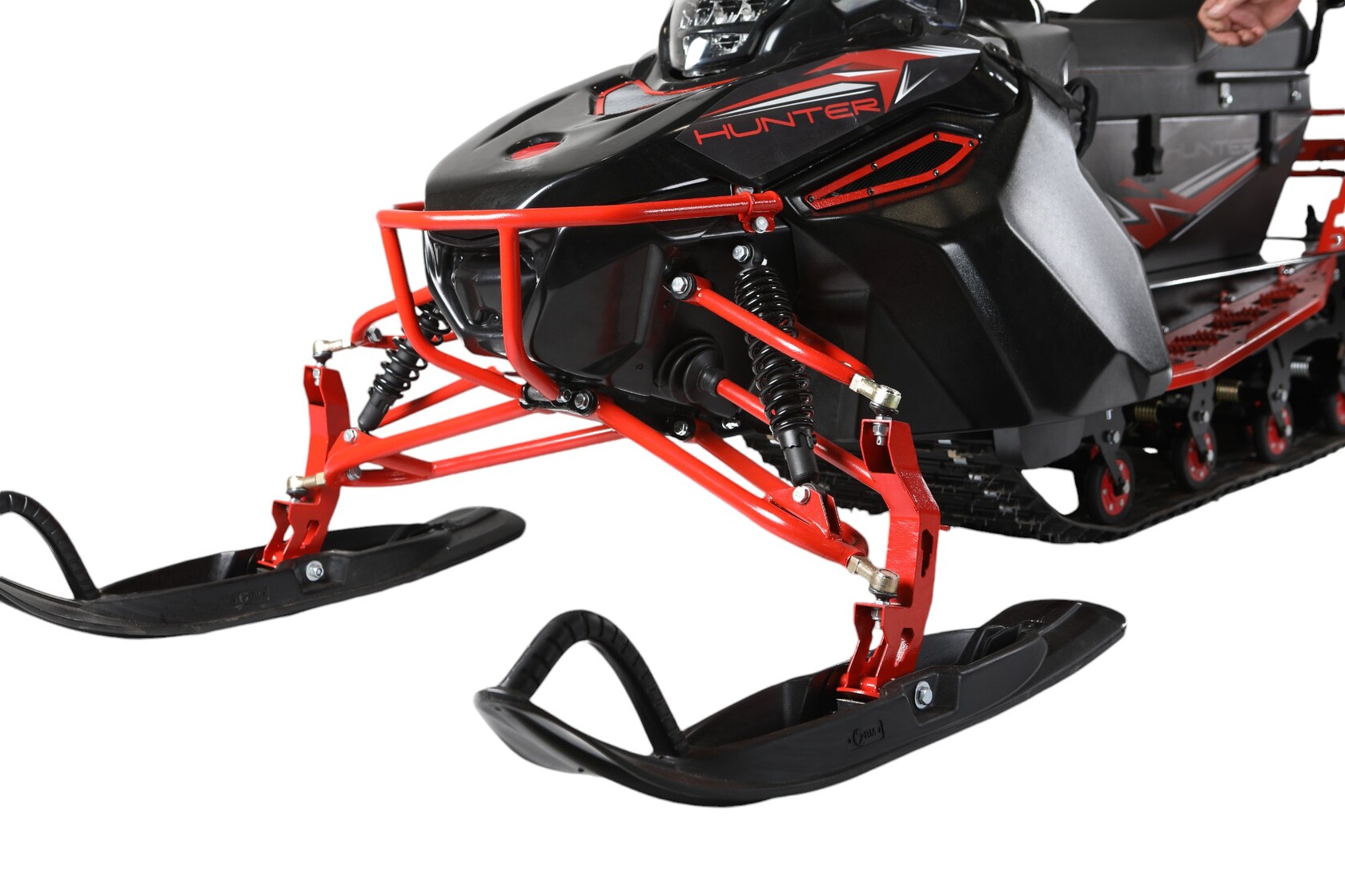 Компания IKUDZO представляет серию снегоходов IKUDZO HUNTER. Снегоходы IKUDZO HUNTER, это современный снегоход на пятисотой гусенице с четырехтактными двигателем.Компания IKUDZO использует только самые качественные двигателя YAMAHA, HONDA, ZONGSHEN, LONCIN и LIFAN.Снегоход созданный при участии ВНИИ ТЕСТ и имеет современную пространственную раму и уникальную подвеску IKUDZO.Новая технология создания цельно-металлической пространственной рамы, на базе коррозионностойкой стали. Рама имеет минимум сварных швов, что значительно увеличило срок службы и защиту от коррозии.Снегоход IKUDZO имеет современную многорычажную подвеску с регулируемыми амортизаторами.Облегченные пластиковые лыжи из морозостойкого пластика.Капот из высококачественного, морозостойкого пластика, состоит из нескольких составных частей, что позволяет без проблем, получить доступ к любым узлам снегохода для обслуживания. А также, в случае повреждений вам достаточно заменить отдельный элемент, что значительно снижает стоимость обслуживания. Мощная, светодиодная фара имеет плотный световой поток и работает в двух положениях ближний и дальний свет.Ветровое стекло, не только защитит Вас от потока ветра но и сохранит свою целость даже в экстренных ситуациях, благодаря своей гибкости.Руль снегохода ИКУДЗО, имеет приятные, эргономичные ручки с подогревом, а также современные блоки управления.Современная панель приборов, имеет множество функций, включая показания уровня топлива, скорости, пробега, температуры двигателя и множество других функций.Подножки снегохода сделаны так, чтобы не набивался снег и ваши ноки уверенно держались благодаря специально созданным выступам.Отдельная гордость компании IKUDZO это уникальная подвеска. Запатентованное строение катков с японскими подшипниками значительно увеличивает срок эксплуатации без необходимости частого обслуживания. Благодаря открытому пространству, подвеска IKUDZO не забивается снегоход и не боится наледи.• Двигатель: 20 л.с. 4х тактный (c Японским карбюратором) ZONGSHEN/LONCIN/LIFAN