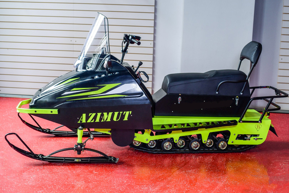 Миниснегоход Бурлак Азимут-2 - вторая версия флагманской новинки «Бурлак Азимут», имеет привлекательный внешний вид, уникальную комплектацию и при этом демократичную цену.По сравнению с первой версией, «Азимут-2» доступен в комплектации с двигателем мощностью 20 л.с., приборная панель дополнена спидометром, а для удобства управления установлены зеркала заднего вида.