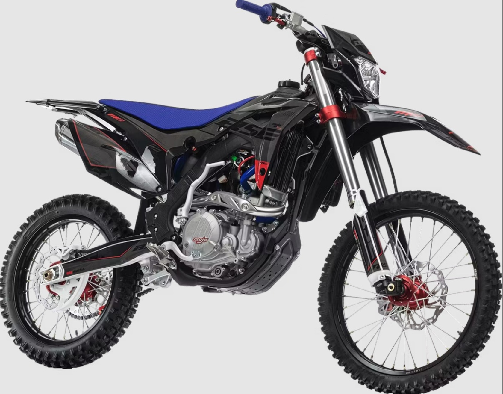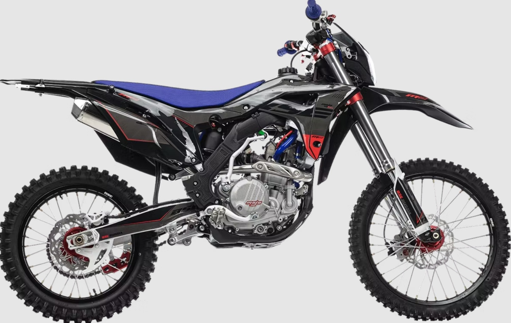 Кроссовый мотоцикл BSE M2 250e 21/18 - полноразмерный спортивный мотоцикл на алюминиевой раме.Ставший уже классикой в мире мотокросса и эндуро среди китайских производителей - полноразмерный мотоцикл на оригинальной, многосоставной, невероятно крепкой и запатентованной заводом Bosuer алюминиевой раме.Идеально сбалансированный, устойчивый, крепкий мотоцикл. Сердце M2 – мощный, эластичный и надежный 250 кубовый Zongshen ZS 177 MM мощностью 27 лс с водяным охлаждением. Отличные показатели крутящего момента во всем диапазоне оборотов. Система подачи топлива – спортивный карбюратор NIBBI RACING 34. Имеется вентилятор охлаждения. Коробка передач - 6 ступенчатая механическая.M2 уже в заводской комплектации готов к покорению серьезного бездорожья и участия в соревнованиях. Подвеска MOJO c большими ходами имеет полный диапазон регулировок и помогает отрабатывать даже самые жесткие приземления, с лёгкостью "проглатывает" все неровности. Идеальная развесовка и сбалансированность конструкции мотоцикла даёт преимущество при прохождении острых поворотов и подъёмов.На мотоцикле установлено все необходимое для оффроуда: вилка “перевертыш”, литые рычаги задней прогрессии, алюминиевый маятник, прочный задний бугель, “злая” внедорожная резина. А также: усиленные легкосплавные колёсные диски MOJO, усиленная цепь, защита рук, датчик моточасов, прочные анодированные CNC ступицы, складные СNC рычаги тормоза и сцепления, колесные подшипники NTN, защита коллектора, картера двигателя и тормозных дисков. Комплектуется одинарным либо двойным глушителем. Мощная гидравлическая тормозная система HSК Racing остановит байк в любых условиях.На BSE M2 также можно с комфортном отправиться в продолжительное путешествие благодаря удобному сиденью, широкому спортивному рулю, наличию электростартера и топливному баку на 6.5 литра. C яркой LED фарой головного света можно кататься в ночное время. Хочется также отметить современный дизайн мотоцикла.