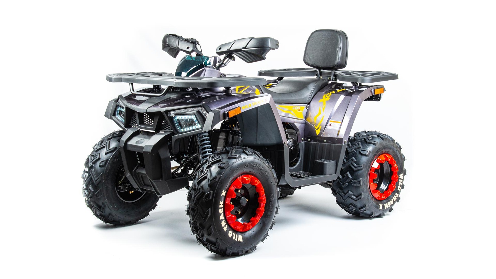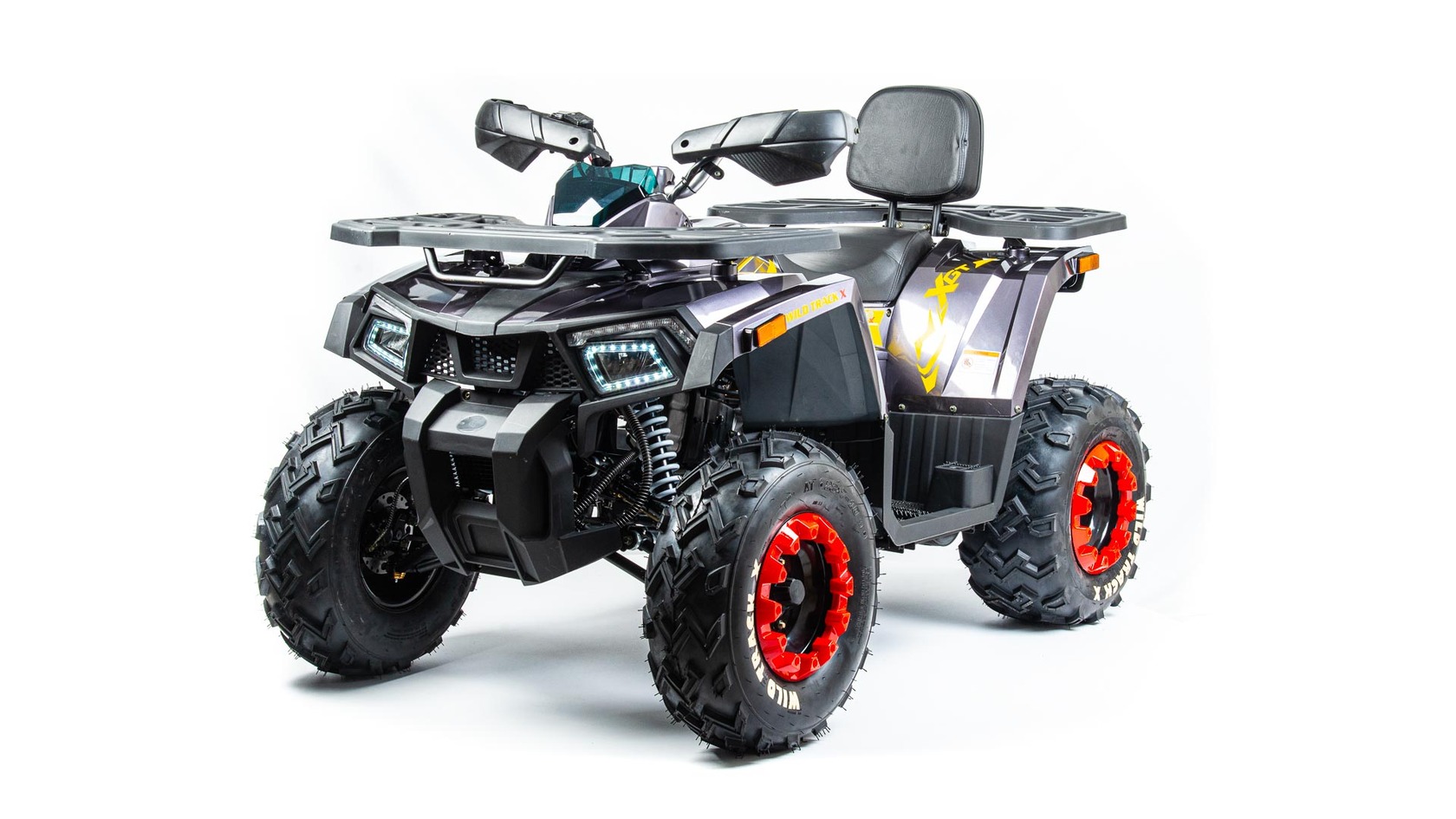 Motoland wild track X – сочетает в себе удобство ,простоту обслуживания и хорошую проходимость в самых разных условиях использования . Благодаря отлично настроенной подвеске управление и передвижение на нем становится очень комфортным. Все неровности и кочки, будут проглатываться без проблем, ведь на нем установлены колеса на 10 дюймов .Квадроцикл оснащен 161 QMK на 200 см3 двигателем c воздушно-масляным охлаждением и автоматической коробкой передач с реверсом , дисковыми тормозами, панелью приборов , линзованной оптикой с диодными ДХО , ручным стартером . Он отлично подойдет для семейных покатушек ,а также для рыбалки и охоты .Вы получите незабываемые впечатления от вождения .Данная комплектация поставляется почти собранная.