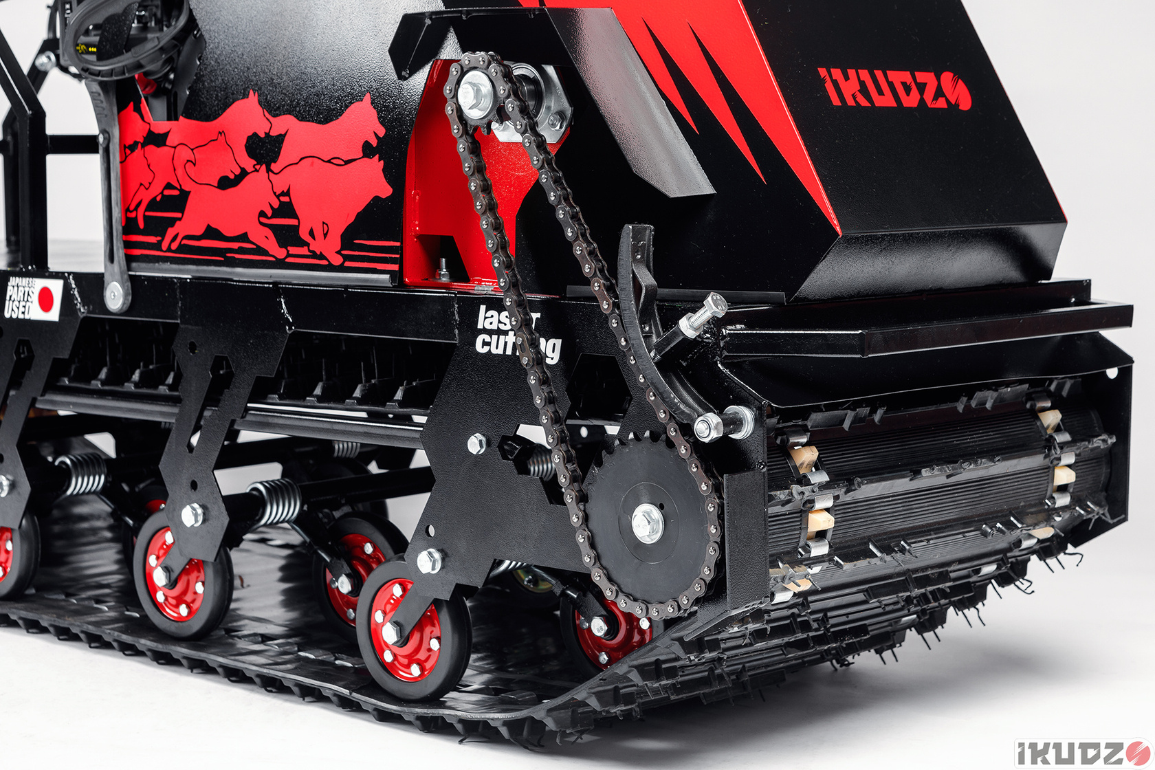 7. Уникальная подвеска IKUDZO.Не забивается снегом! Катки всесезонные. Подшипники японские. Очень дорогие катки и подшипники стоят в МОТОБУКСИРОВЩИКАХ IKUDZO!