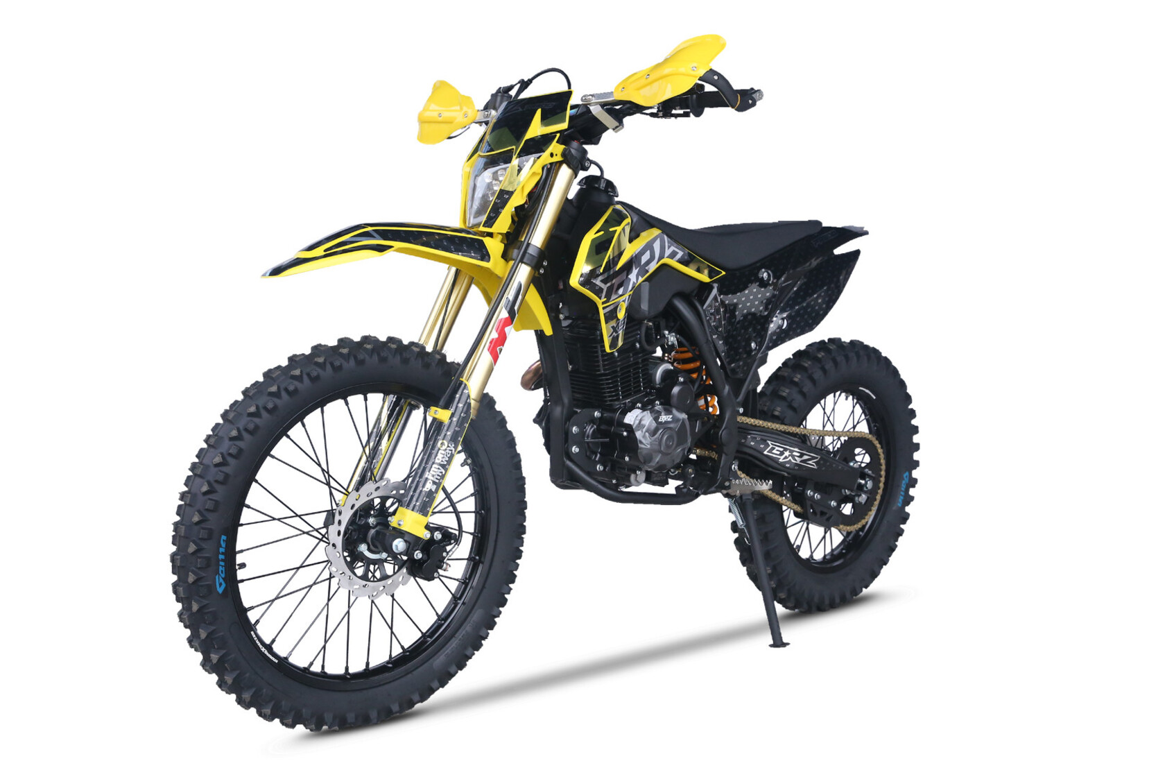 Мотоцикл BRZ X5 PR300 23 - живая легенда, хит продаж. Это среднеразмерный мотоцикл с мотором Zongshen ZS172FMM-5 с баланс. валом и кубатурой 300 см3. Двигатель работает в паре с карбюратором NIBBI Racing Black PE30, который отлично раскрывает его потенциал.BRZ X5 PR300 23 получил регулируемую вилку MNT, зеркало 41 мм. Задний амортизатор также имеет необходимые регулировки.С завода BRZ X5 PR300 23 оснащен отличной резиной Gema, спереди F-Enduro 90/90 - 21, сзади "жирнющая" мягкая XPlorer 754 01 120/80-18. Мощный зацеп уже с коробки!Для комфорта и удобства райдера предусмотрены все необходимые опции - отличная защита рычагов, рычаги "неломайки", приборная панель.Если вы давно искали надежный, легкий, хорошо укомплектованный эндуро с мощным мотором, то мотоцикл BRZ X5 PR300 23 это отличный выбор, особенно для новичка.