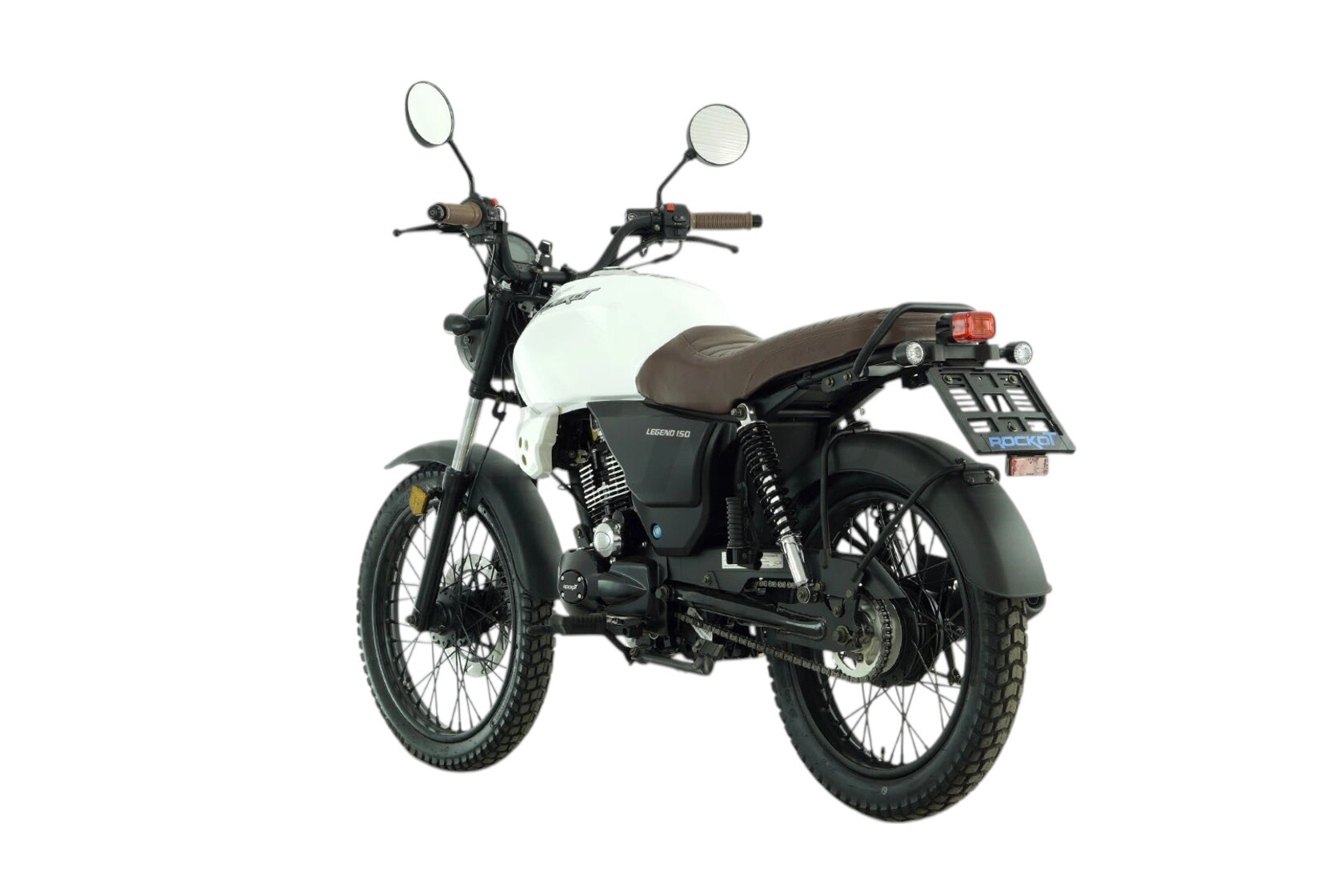 ROCKOT LEGEND 150 - классический дорожный мотоцикл, на создание которого команду специалистов Rockot-Motors вдохновили дорожные ретро-мотоциклы. В итоге, с конвейера завода сходят стильные, аутентичные, классические мотоциклы, которые отличаются от ретро-байков современными органами управления и оборудованием.При создании мотоцикла ROCKOT LEGEND 150, было взято множество образов мотоциклов по типам: классик, скремблер, каферейсер. Для придания модели духа мотоциклетной промышленности 70-х годов прошлого столетия, было решено установить металлические крылья спереди и сзади.Что, как не глушитель и его форма, может охарактеризовать стиль мотоцикла? Поэтому модель LEGEND 150 обрела фирменный глушитель, чья форма в простонародье называется “огурец”.Фара головного света имеет классическую круглую форму, а также специальную металлическую решетку “паутинку”, которая была так популярна раньше на мотоциклах класса типа скремблер.Сзади установлен округлый прямоугольный фонарь, выполненный в общей стилистике мотоцикла. Также, антуражность концепции мотоцикла достигается благодаря применению маленьких указателей поворотов круглой формы.Пожалуй, самое необычное решение, которое позволило показать, что это настоящий “железный” мотоцикл - обточенные, шлифованные ребра охлаждения на головке цилиндра. Современная LED приборная панель выполнена в круглом корпусе, что издали не отличает ее от привычного, классического спидометра.Мотоцикл ROCKOT LEGEND 150 выпускается в двух цветах: с белым глянцевым и черным матовым топливными баками. Но это не все их отличия. Модель белого цвета в своей комплектации имеет коричневое сиденье из эко кожи и коричневые ручки руля. Во второй расцветке мотоцикл выполнен полностью в черном цвете.LEGEND 150 оснащен ста пятидесяти кубовым четырехтактным двигателем CG150 производства Zongshen, который развивает мощность 11 лошадиных сил. Данная модель двигателя отлично зарекомендовала себя благодаря высокому уровню надежности, легкости в обслуживании и высоким показателям мощности и крутящего момента. Все это обусловлено конструкцией системы ГРМ с нижним распредвалом.Коробка передач - пятиступенчатая с многодисковым сцеплением мокрого типа. За образование топливной смеси отвечает карбюратор PZ27, который позволит добиться от двигателя максимальных мощностных характеристик и при этом останется экономичным. Как принято на мотоциклах типа “скремблер”, дорожный мотоцикл ROCKOT LEGEND 150 оснащается длинноходной подвеской. Спереди установлены классические амортизаторы длиной 700 мм и толщиной 31 мм. Сзади мотоцикл оборудован двумя пружинно-гидравлическими амортизаторами. Хоть мотоцикл и не развивает высокую максимальную скорость (до 110 км/ч), он оборудован дисковым гидравлическим тормозом спереди. И барабанным механическим тормозом сзади. Передний двухпоршневой тормозной суппорт работает в паре с 240 мм тормозным диском. Спереди и сзади установлены 18-ти дюймовые диски с универсальными покрышками размерностью 2.75-18 и 3.00-18. Прочные стальные спицевые диски окрашены в черный матовый цвет..