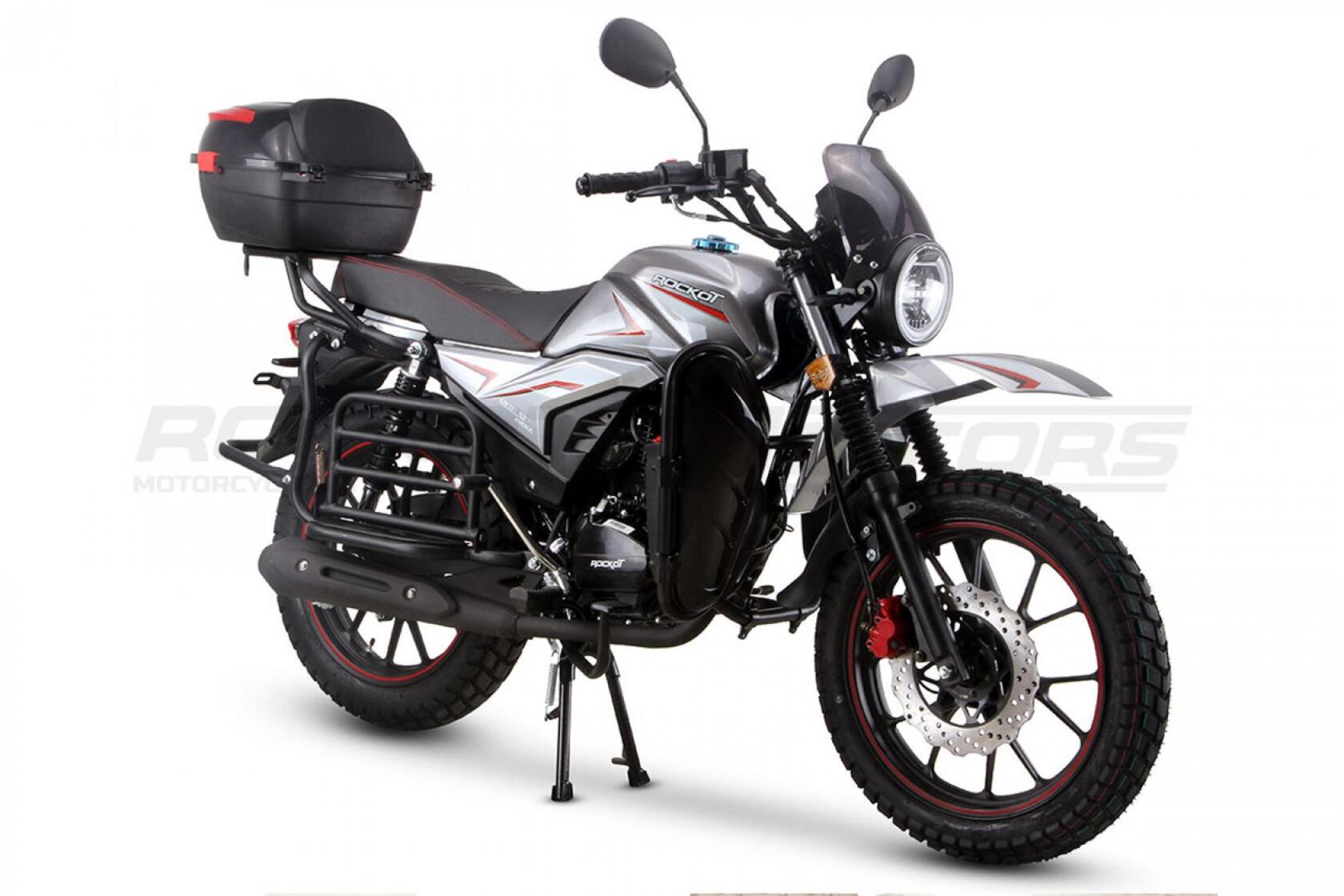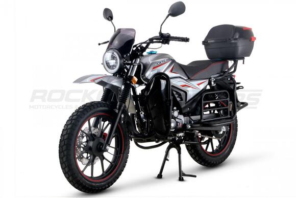 ROCKOT QUEST 150 - новый, дорожный мотоцикл от компании ROCKOT-MOTORS, с большим потенциалом на длительные поездки, независимо от типа дорожного покрытия. Благодаря своим компактным размерам, короткой колесной базе, мотоцикл отлично чувствует себя в городской среде с большим объемом дорожного трафика. Максимальная скорость ROCKOT QUEST 150 - до 92 км/ч на стандартных приводных звездах. Масса мотоцикла -126 килограмм, но при небольшой высоте по седлу в 820 мм и низкому центру тяжести, он ощущается достаточно легким.Мотоцикл имеет ЭПТС, оснащен цветной электронной панелью приборов, зеркалами, всей необходимой светотехникой, что позволяет законно передвигаться по дорогам общего пользования. ДизайнМотоцикл построен в классическом исполнении, но имеет множество современных, технологичных решений.Все световые приборы - светодиодные и очень яркие. Передняя фара имеет круглую классическую форму, но стоит ее включить, как мотоцикл обретает совершенно другой вид.Цветовая гамма модели имеет три варианта окраски: бело-красный, черный и серый.Конечно же, бросается в глаза оснащение мотоцикла туристической багажной системой. На заднем багажнике установлен жесткий центральный кофр. Откидные боковые багажники, позволяют перевозить объемный груз, а также устанавливать боковые багажные сумки. Глядя на мотоцикл, складывается впечатление, что все его пространство использовано максимально практично. Даже в дугах безопасности встроены дополнительные багажные карманы.Топливная системаВ основе топливной системы ROCKOT QUEST 150 - большой топливный бак объемом 12 литров. В зависимости от условий эксплуатации и стиля езды, расход топлива варьируется в районе 3-3,5 литров на 100 километров. Это позволяет преодолевать большие расстояния на одном баке бензина. Используемый тип топлива - бензин АИ-92. Образует топливную смесь - карбюратор PZ27 с ускорительным насосом. Ускорительный насос исключает момент “провала” при резком открытии дроссельной заслонки.Тормозная системаПо канонам классического мотоциклостроения, ROCKOT QUEST 150 имеет комбинированную тормозную систему. Спереди установлен дисковый гидравлический тормоз, с двухпоршневым суппортом, яркого красного цвета. Задний тормоз - механический, барабанный.Кому подойдет ROCKOT QUEST 150Мотоцикл будет очень полезен новичкам. Его небольшие габаритные размеры, низкий центр тяжести, малая высота по седлу - позволяют быстро освоить технику управления мотоциклом как в условиях города, так и бездорожья. С практичной точки зрения, мотоцикл понравится любителям выезжать на отдых за город. Отличная туристическая подготовка, позволит перевозить все, что Вам может потребоваться во время отдыха.Благодаря заложенной надежности в конструкцию двигателя и мотоцикла - ROCKOT QUEST 150 оценит старшее поколение, для кого требуется простая и надежная техника..