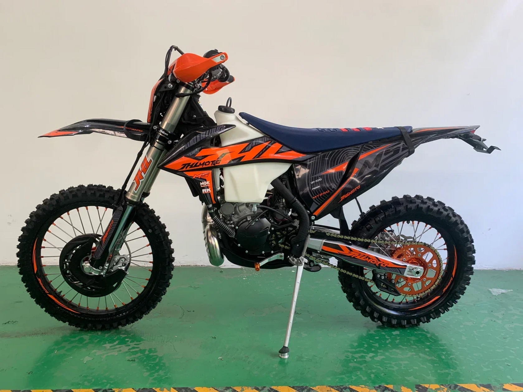 Мотоцикл JHL M5 MT250 (1E66MM) — это стильный и надежный внедорожный мотоцикл, разработанный для любителей активного отдыха и экстремальных поездок по бездорожью. Он сочетает в себе мощь, выносливость и современный дизайн, что делает его отличным выбором для тех, кто ценит свободу передвижения и адреналин.Основные характеристики:Двигатель: 250 куб. см, 4-тактный, одноцилиндровый, с воздушным охлаждением. Этот мотор обеспечивает достаточную мощность для преодоления сложных участков дороги и уверенную динамику.Трансмиссия: 5-ступенчатая механическая коробка передач, которая позволяет легко управлять мотоциклом как на бездорожье, так и на трассе.Подвеска: Длинноходная передняя вилка и задний моноамортизатор обеспечивают комфорт и устойчивость на неровных поверхностях.Тормоза: Дисковые тормоза на обоих колесах гарантируют надежное торможение в любых условиях.Колеса: Прочные спицованные колеса с внедорожными покрышками обеспечивают отличное сцепление с грунтом, песком или грязью.Дизайн: Агрессивный и современный внешний вид с защитными элементами, такими как дуги и пластиковые крылья, подчеркивает спортивный характер мотоцикла.Вес: Легкая конструкция (около 120 кг) делает мотоцикл маневренным и простым в управлении.Преимущества:Идеален для езды по бездорожью, лесам, горам и другим сложным ландшафтам.Простота в обслуживании благодаря надежной конструкции и доступным запчастям.Доступная цена по сравнению с аналогами других брендов.JHL M5 MT250 подойдет как для начинающих райдеров, так и для опытных мотоциклистов, которые ищут надежный и недорогой внедорожный мотоцикл. Это отличный выбор для тех, кто хочет покорять бездорожье или просто наслаждаться активным отдыхом на природе.