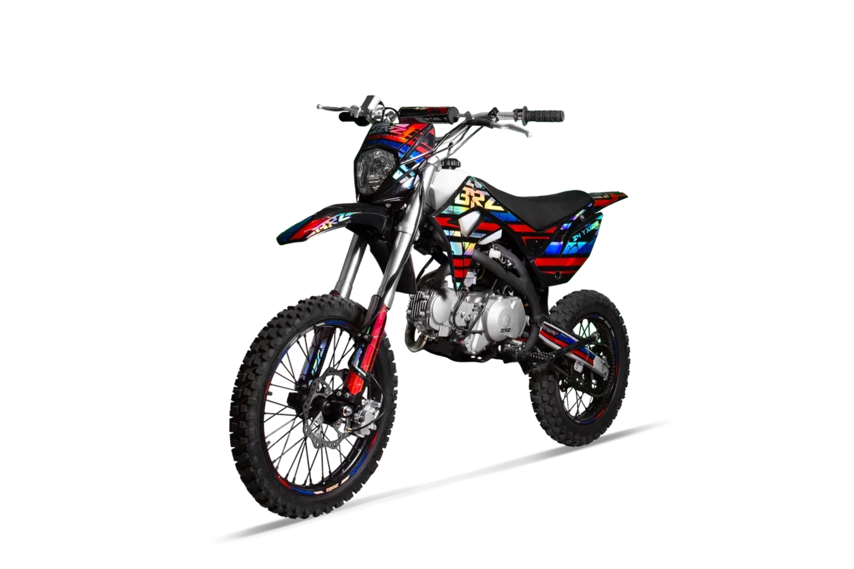 Питбайк BRZ Z4 YX125 17/14 подойдет для райдеров с ростом от 150 см. на механической N-1-2-3-4 КПП ,с электростартером и фарой. Характеристик: Кубатура – 125cc