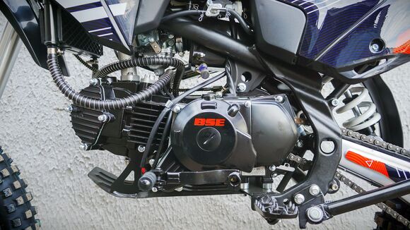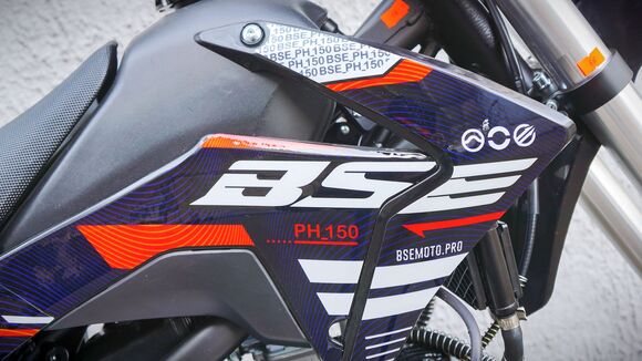 Питбайк BSE PH 150 19/16 AK47 Red (015). Основа PH150 - рама из хромомолибденовой стали повышенной жесткости с литыми усилителями - фирменный знак качества завода BOSUER! Cиловая установка питбайка - надежный и тяговитый 4-тактным двигателем YX объёмом 150 см3 с воздушным охлаждением. Максимальная мощность – внушительные 15 лс. Питает мотор карбюратор MIKUNI VM22. Питбайк оснащен 4-ступенчатой механической трансмиссией. Запуск мотора осуществляется при помощи электростартера или кик-стартера. Подвески с большими ходами: передняя - телескопическая вилка перевёрнуто типа, задняя- моноамортизатор. LED фара головного света, "злая" резина, vощная тормозная система HSK Racing, японские колесные подшипники NTN, защита мотора, руль ProTaper - питбайк полностью укомплектован всем необходимым для покатушек и гонок.PH150 – профессиональный выбор самого продвинутого "питбайкера".