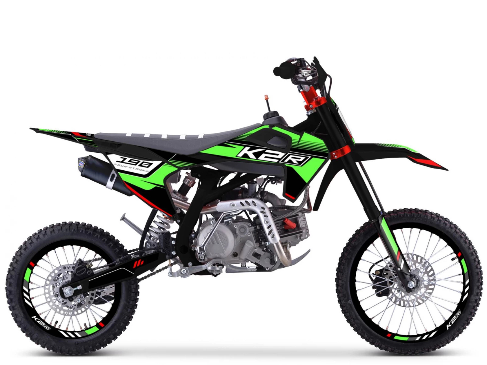 K2R PF 190 - мощный спортивный питбайк «из коробки» готовый к участию в гонках.В раме питбайка установлен надежный 1-цилиндровый двигатель Zongshen, работающий с 5-ступенчатой КПП;17 и 14-дюймовые спицованные колеса;регулируемая перевернутая вилка;полностью регулируемый DNM амортизатор; высота сиденья составляет 845 миллиметров;дорожный просвет равен 320 мм.