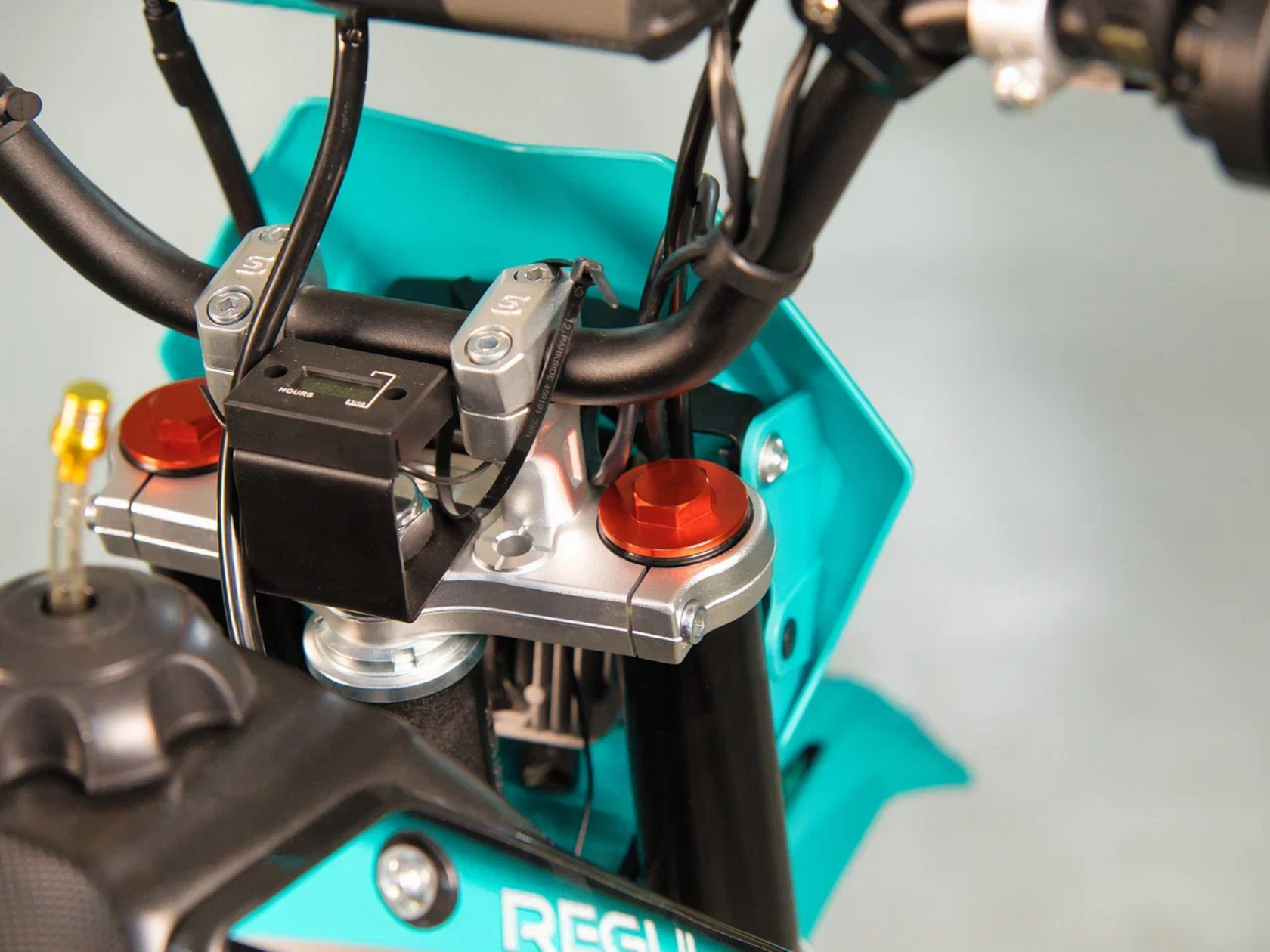 Regulmoto SEVEN PRO на колесах 17/14 дюймов – обновлённая модель популярного питбайка для активного отдыха и спортивных развлечений. Этот мини-мотоцикл поможет своему владельцу получить или усовершенствовать навыки управления внедорожной мототехникой, и станет надежным напарником в поездках по любому бездорожью.За подготовку топлива у свежей модификации питбайка отвечает карбюратор Nibbi PE19 производства известного бренда спортивных компонентов Nibbi Racing. Среди других обновлений модели: новый пластик "Betta", качественные амортизаторы бренда KKE, модульная LED-фара с четырьмя сверх яркими светодиодами, светодиодный стоп-сигнал, регулируемые подножки, высокий толстостенный алюминиевый руль ProTaper EVO с перемычкой и регулировкой вылета, а также двухкомпонентные серо-черные грипсы.В числе стоковых комплектующих и компонентов питбайка Regulmoto SEVEN PRO необходимо отметить:• усиленные ободья колес из алюминия марки 7116;
