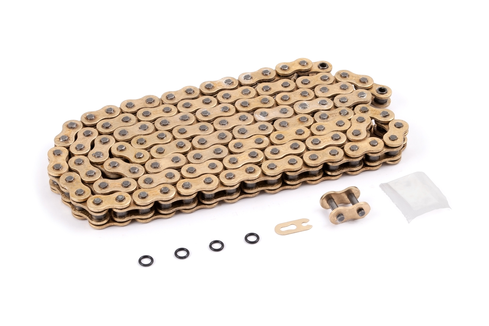 • Усиленная сальниковая приводная цепь SFR 520HO GOLD на 120 звеньев подходит для мотоциклов объемом 125–450 см³. Обеспечивает надёжную работу трансмиссии, увеличенную износостойкость и долговечность благодаря сальниковой конструкции. Золотое покрытие придаёт стильный внешний вид и дополнительную защиту от коррозии.
