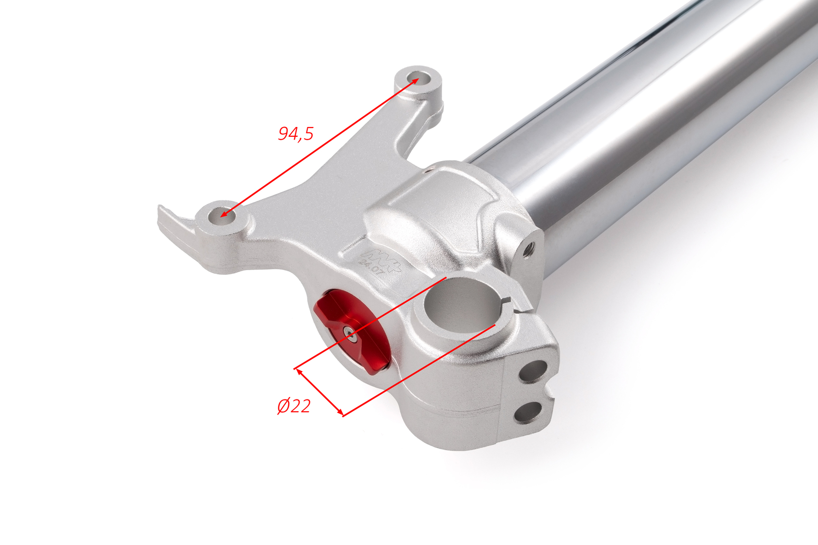 Перья вилки для полноразмерных эндуро мотоциклов с шасси К8. Длина 910 мм, диаметр пера 48 мм. Однокартриджная конструкция с регулировками сжатия и отбоя. Имеют клапан для сброса воздуха и крепление под суппорт типа KTM.